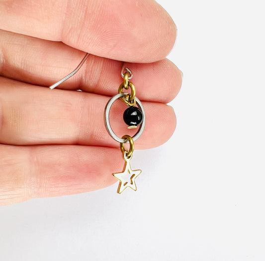Onyx & Star Single Crystal Earring – Strength & Resilience Manifestation Jewelry (Sold as One Earring)
