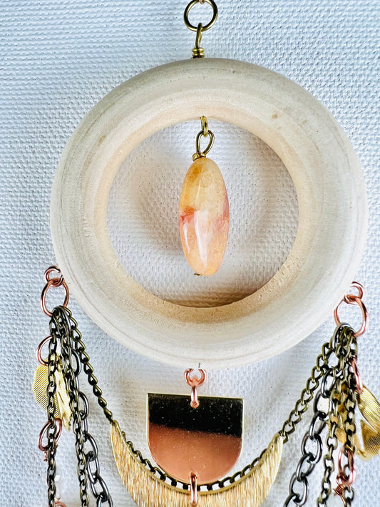 Fossilized Coral, Moonstone, Jasper, Green Garnet Manifestation Charm Wall Art