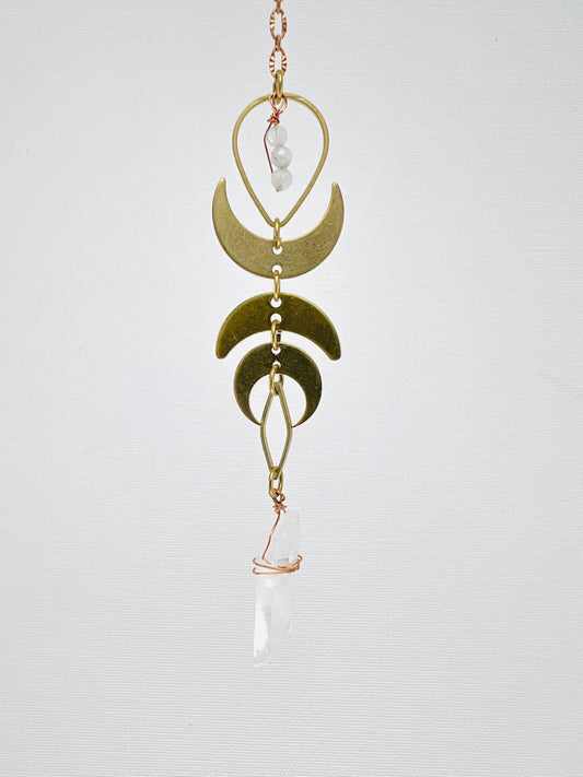 Singly Sold Clear Quartz & Moon Earring, Crystal Manifestation Jewelry