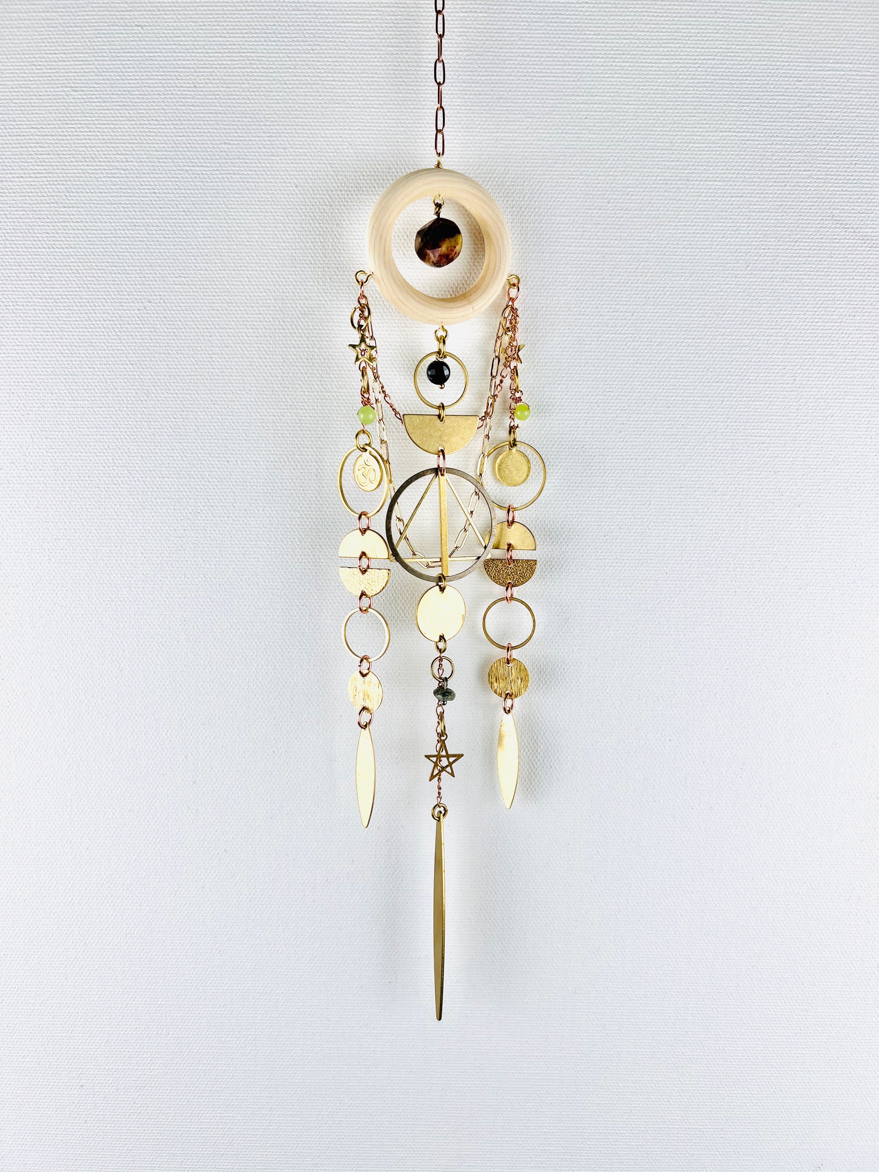 Simply hang your manifestation charm in your space, where you will see it often. This helps to keep your manifestations in the forefront of your mind. Keep the tag with listed stones and manifestations so you will always know what your charm means.