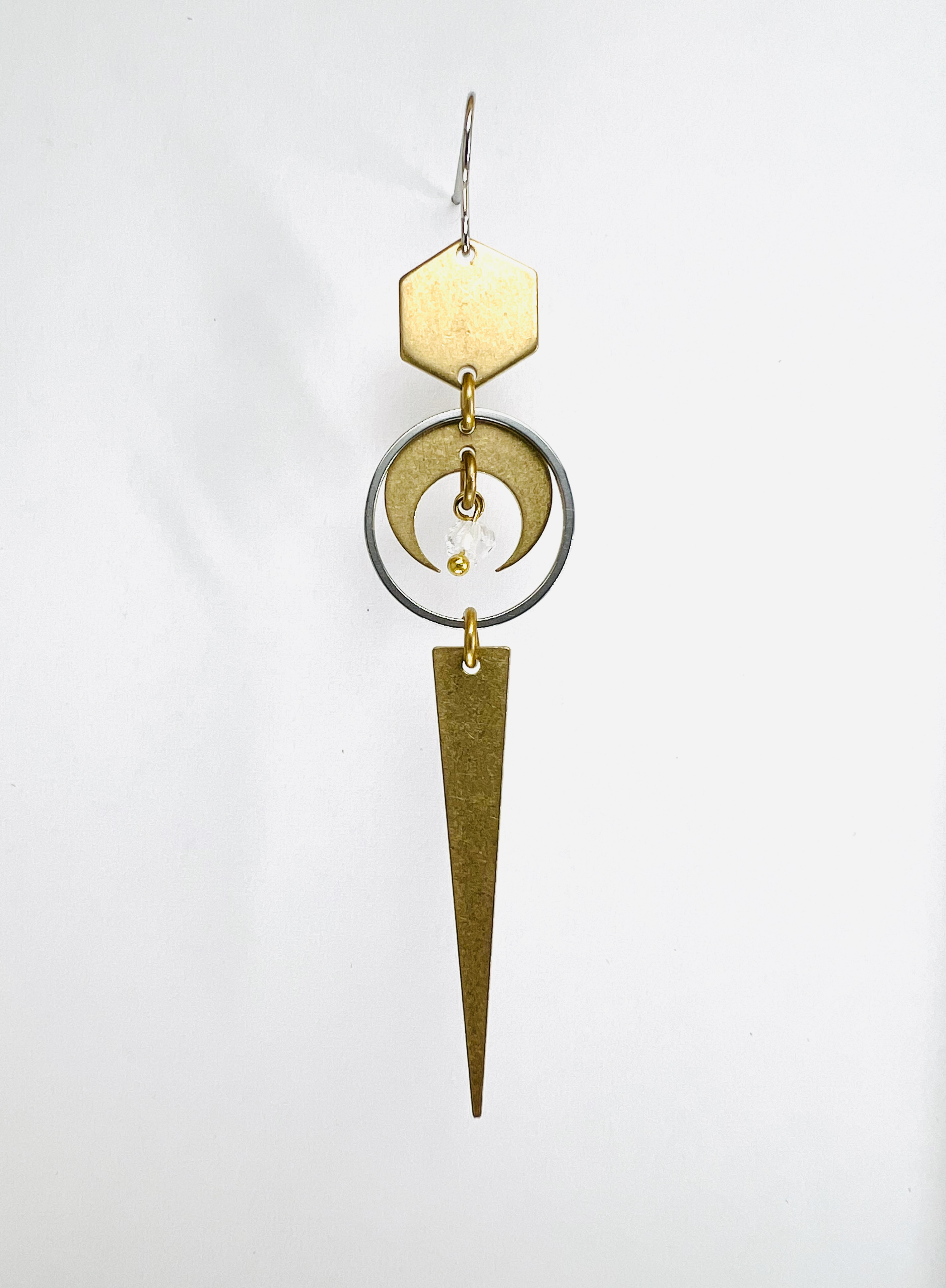 Designed to be worn alone or intuitively mixed and matched with another crystal earring, this elongated piece invites lightness and precision into your daily ritual of getting dressed. Herkimer Diamond is often chosen for its association with heightened awareness and creative flow, making it a meaningful companion for moments of focus, reflection, and expansion.