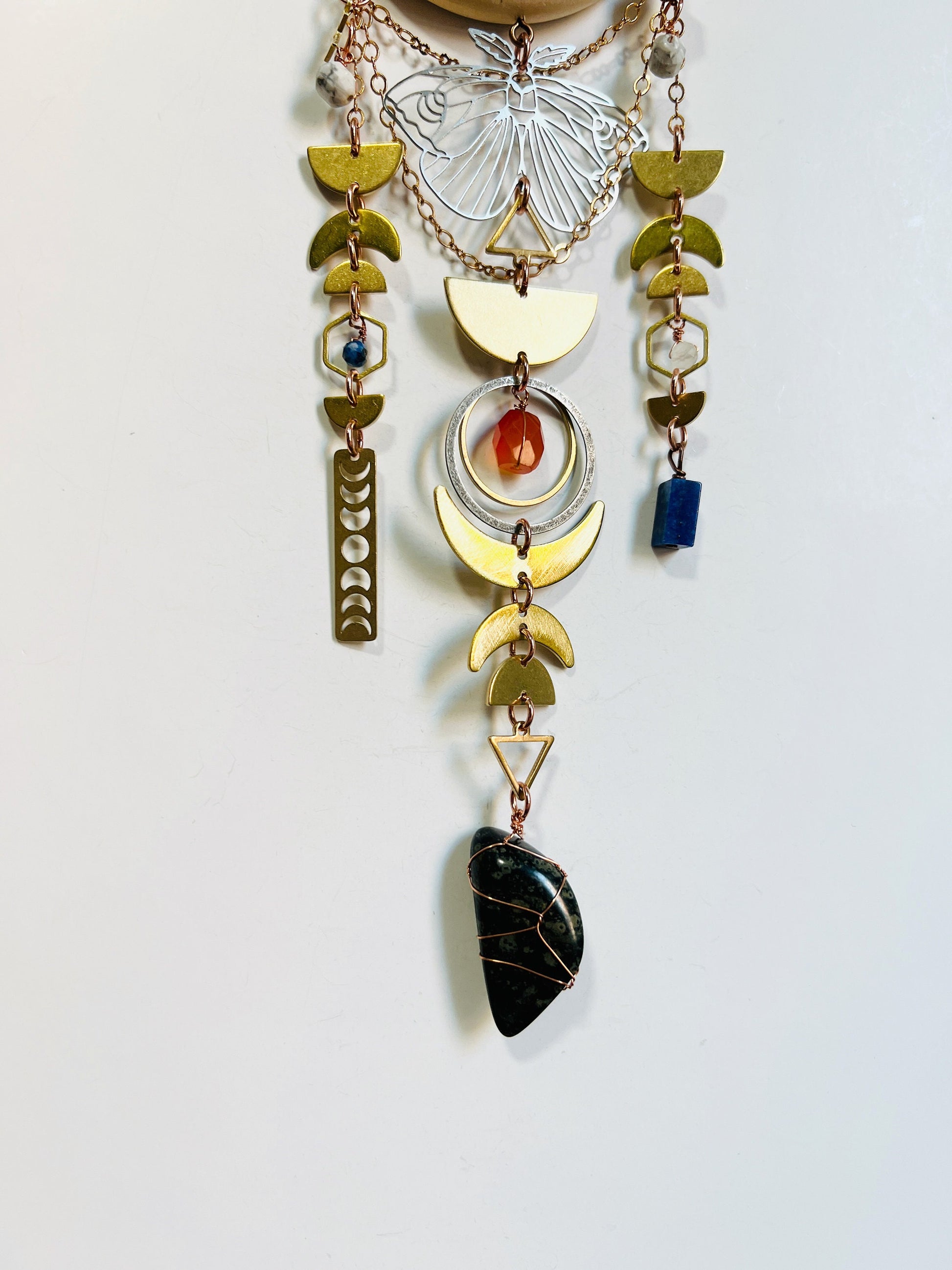 Simply hang your manifestation charm in your space, where you will see it often. This helps to keep your manifestations in the forefront of your mind. Keep the tag with listed stones and manifestations so you will always know what your charm means.