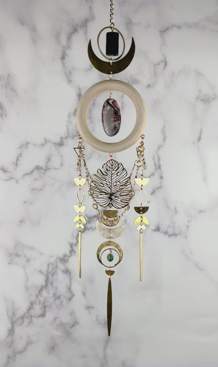 Simply hang your manifestation charm in your space, where you will see it often. This helps to keep your manifestations in the forefront of your mind. Keep the tag with listed stones and manifestations so you will always know what your charm means.