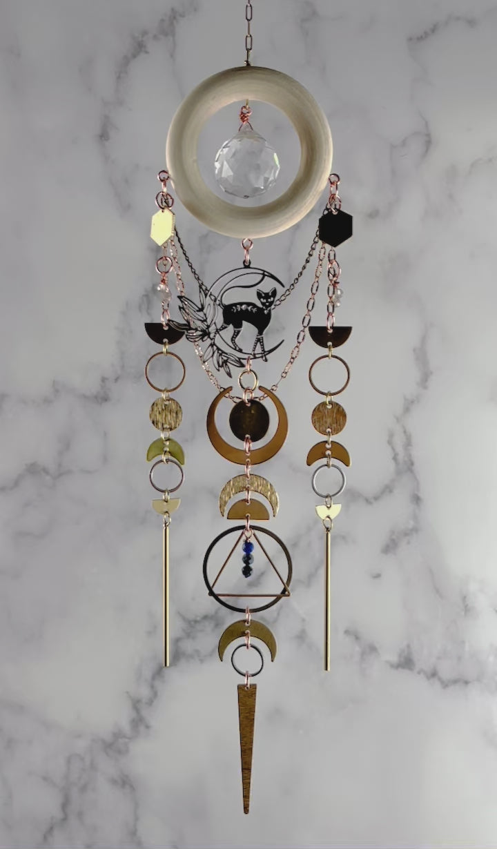 Simply hang your manifestation charm in your space, where you will see it often. This helps to keep your manifestations in the forefront of your mind. Keep the tag with listed stones and manifestations so you will always know what your charm means.