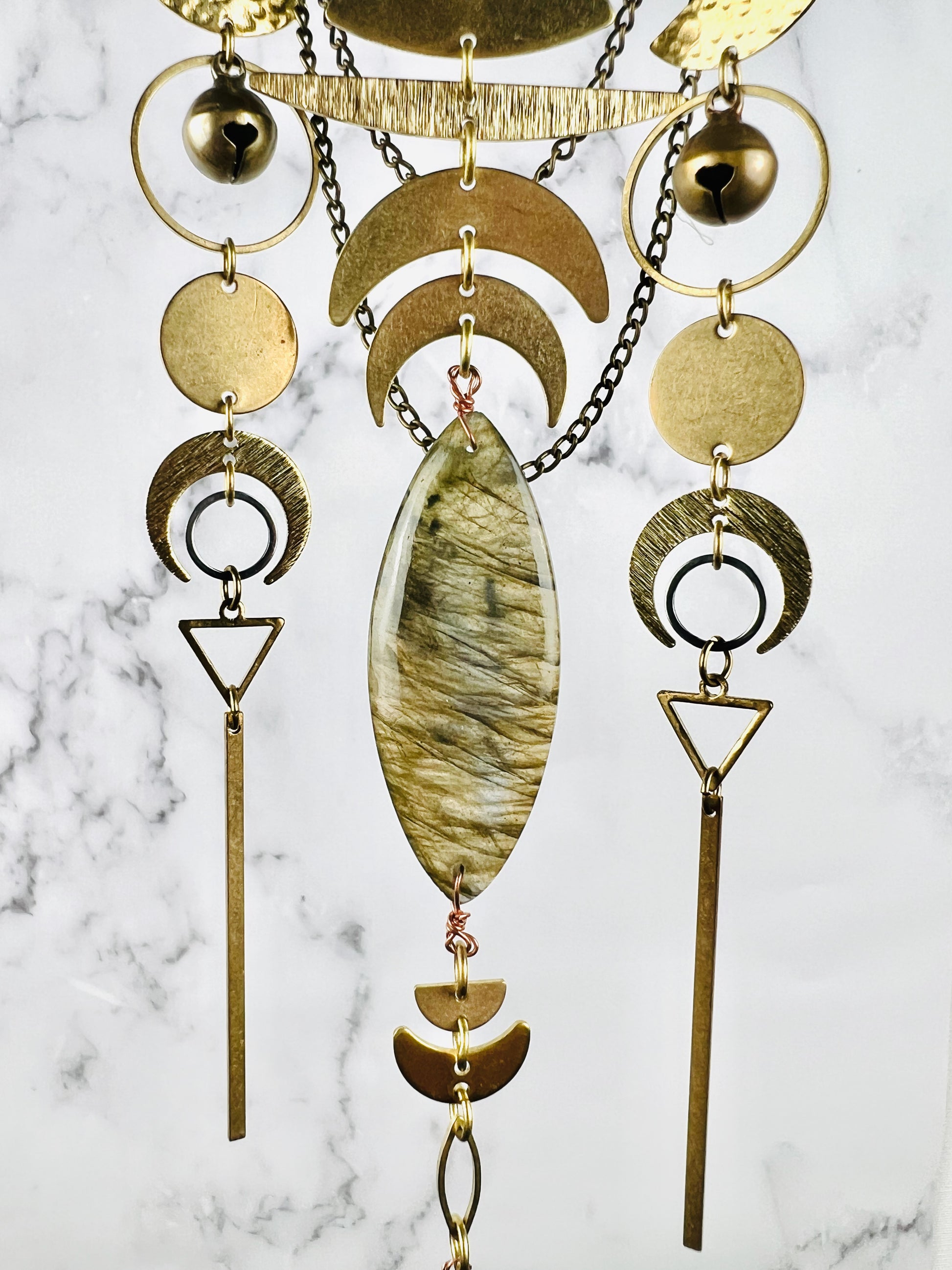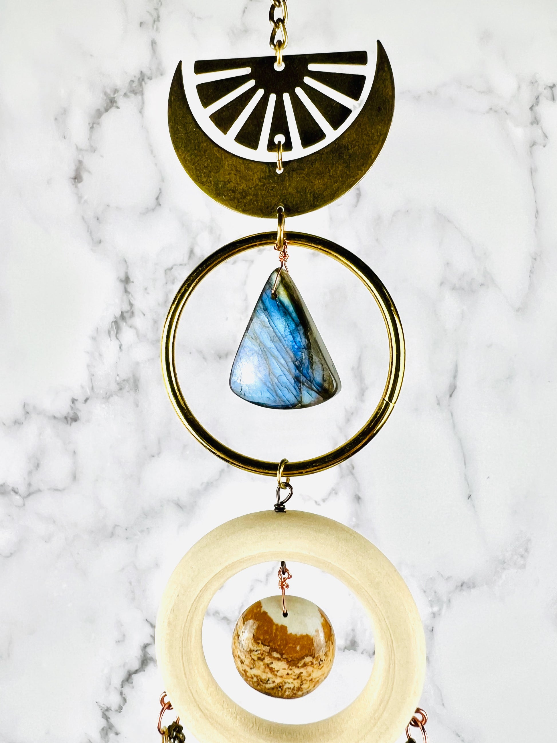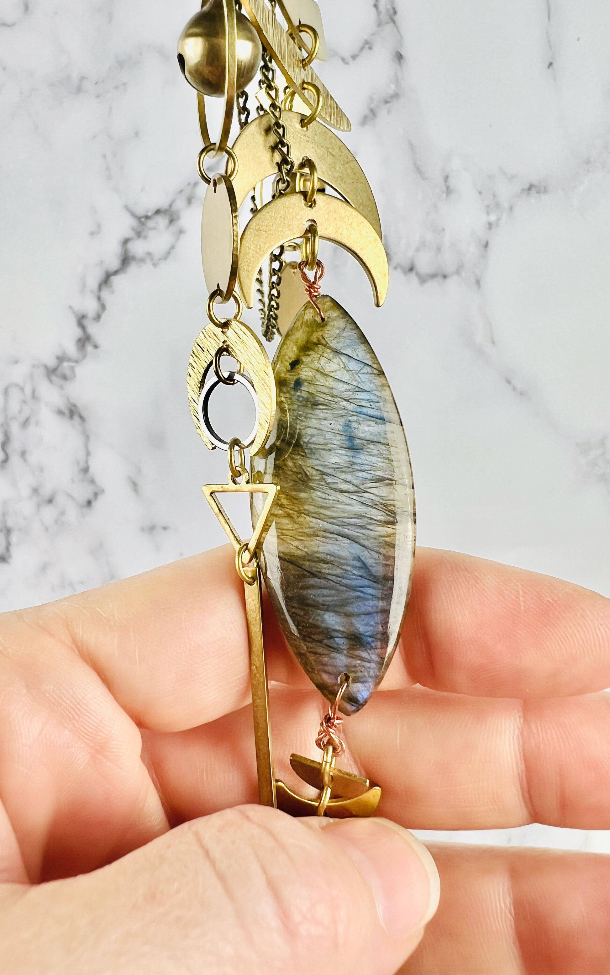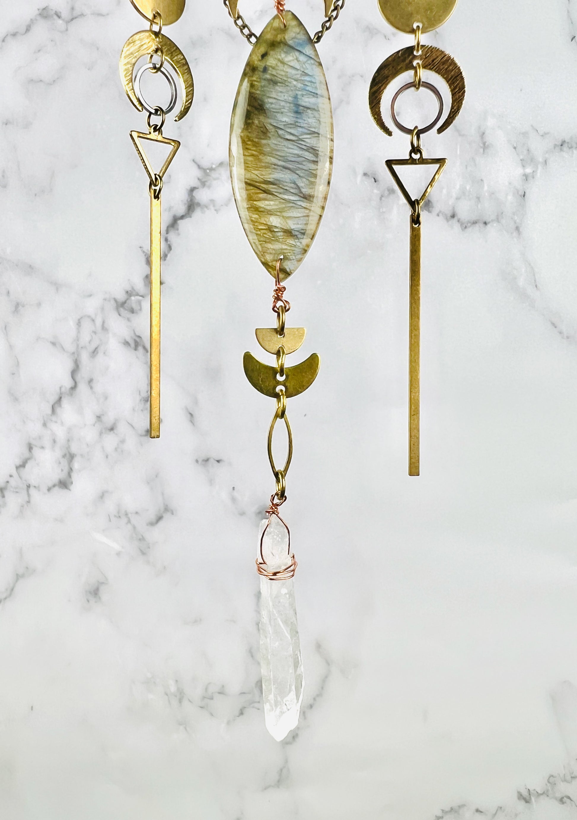 Labradorite, Picture Jasper and Clear Quartz Manifestation Charm