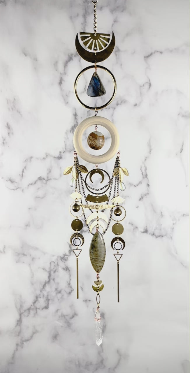 Simply hang your manifestation charm in your space, where you will see it often. This helps to keep your manifestations in the forefront of your mind. Keep the tag with listed stones and manifestations so you will always know what your charm means.