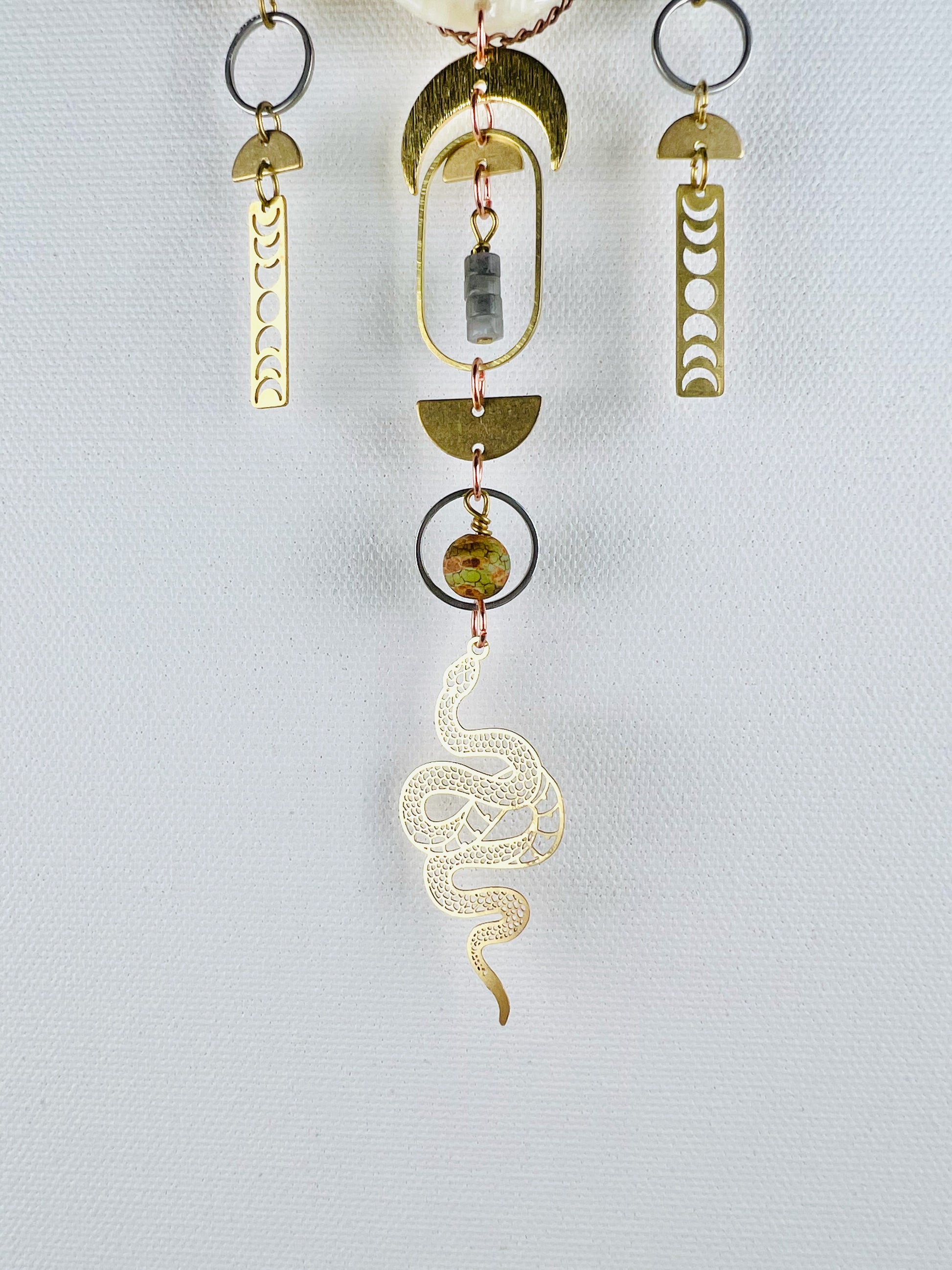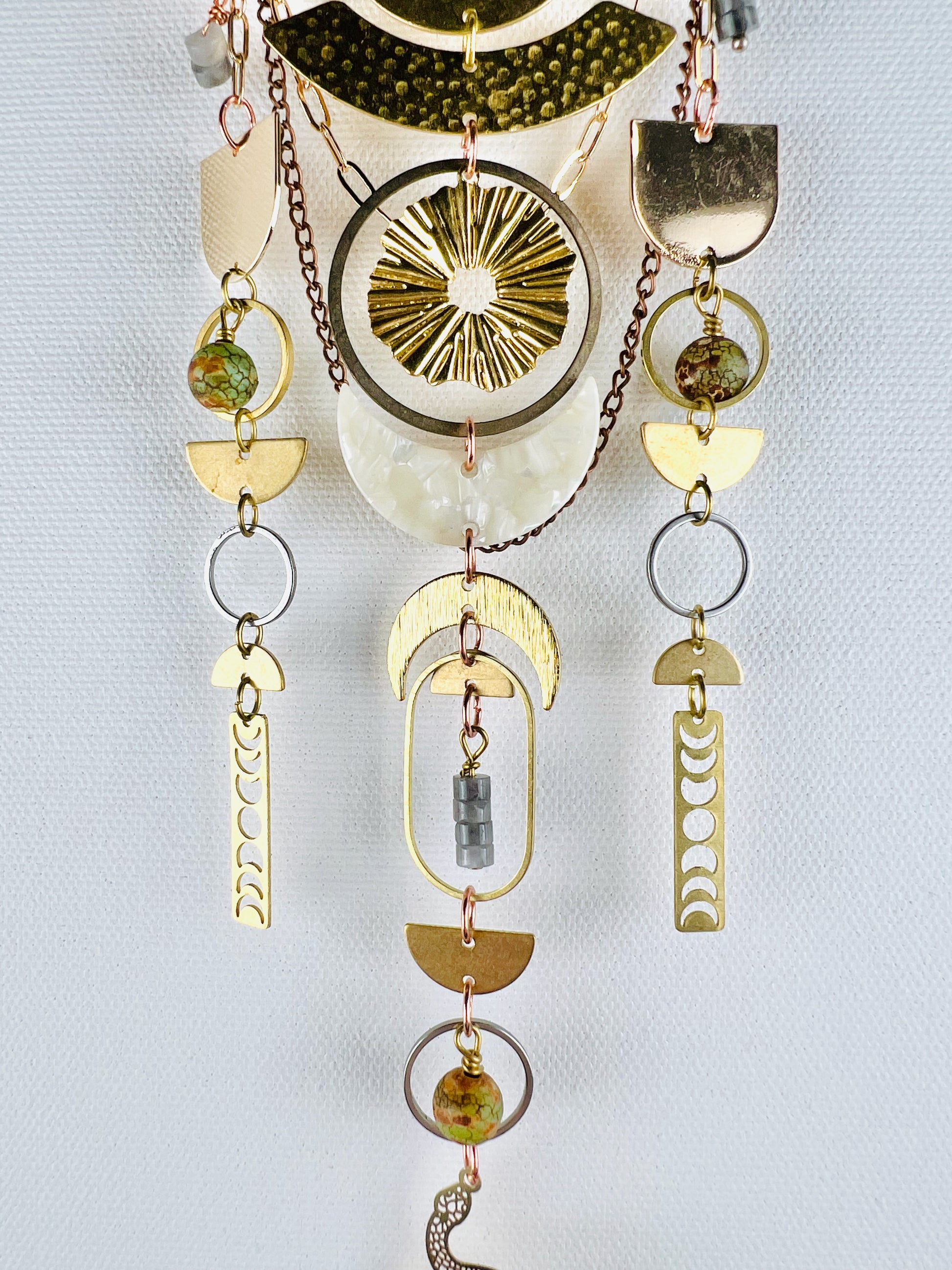 Simply hang your manifestation charm in your space, where you will see it often. This helps to keep your manifestations in the forefront of your mind. Keep the tag with listed stones and manifestations so you will always know what your charm means.
