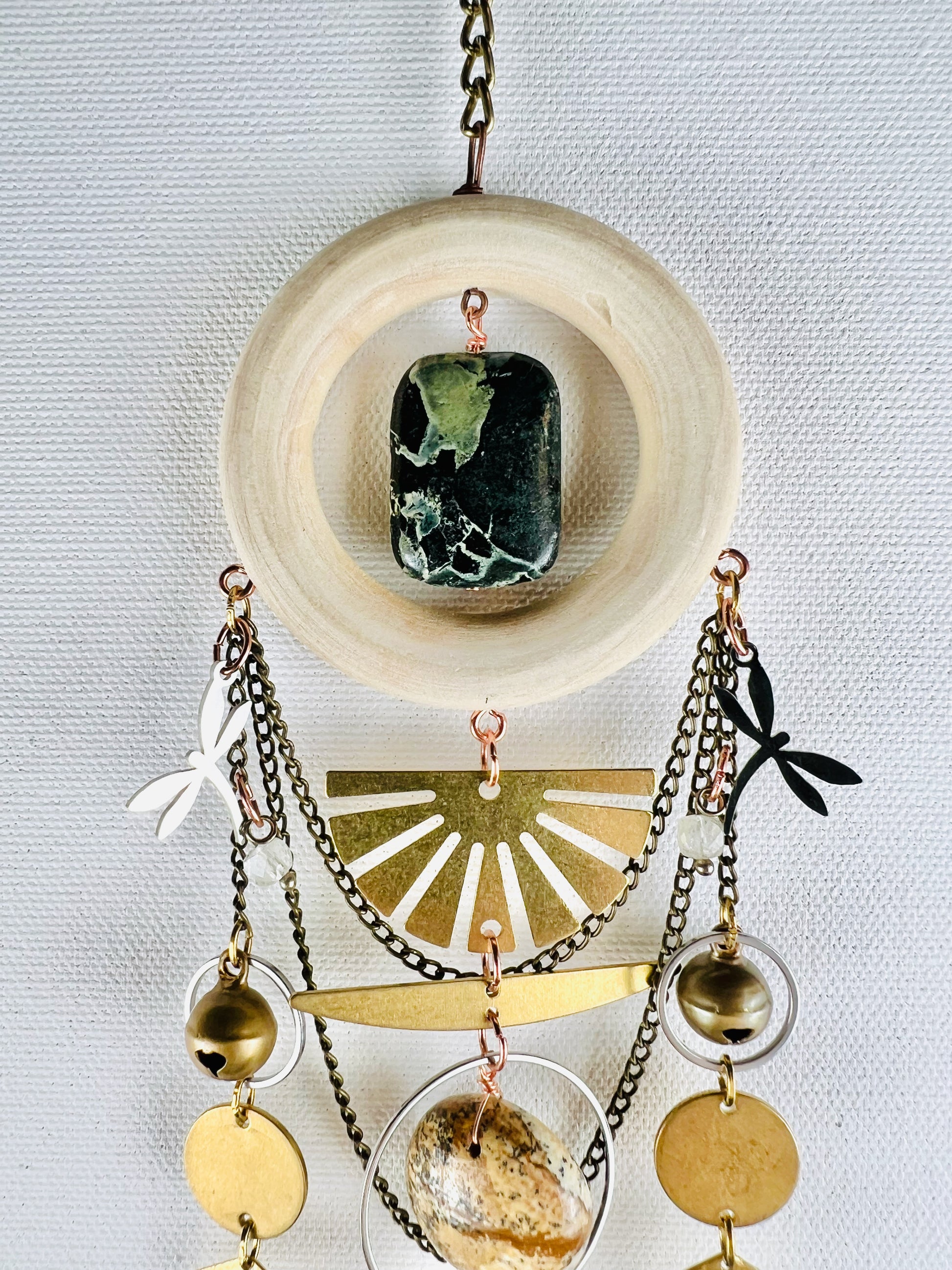 Simply hang your manifestation charm in your space, where you will see it often. This helps to keep your manifestations in the forefront of your mind. Keep the tag with listed stones and manifestations so you will always know what your charm means.
