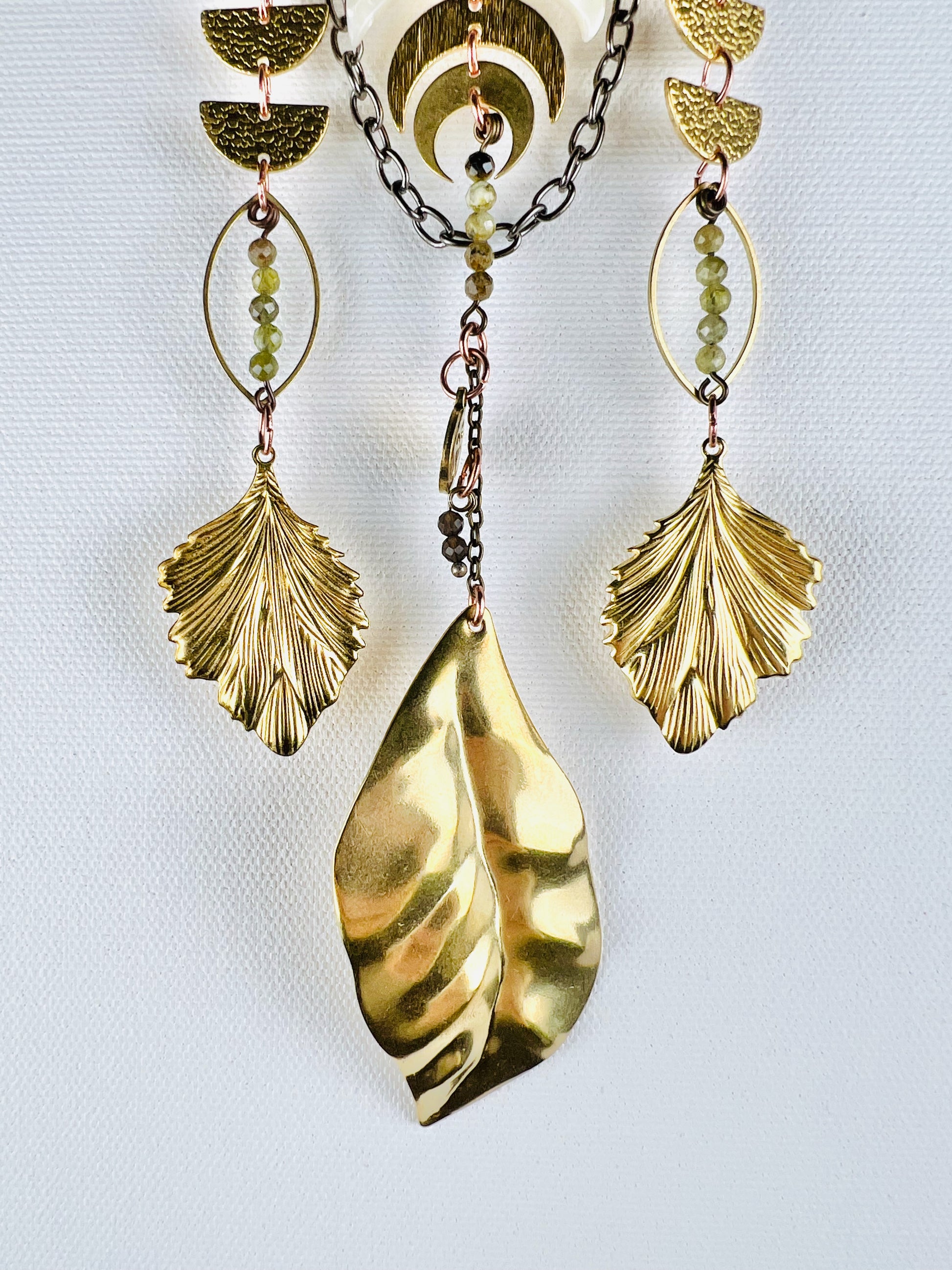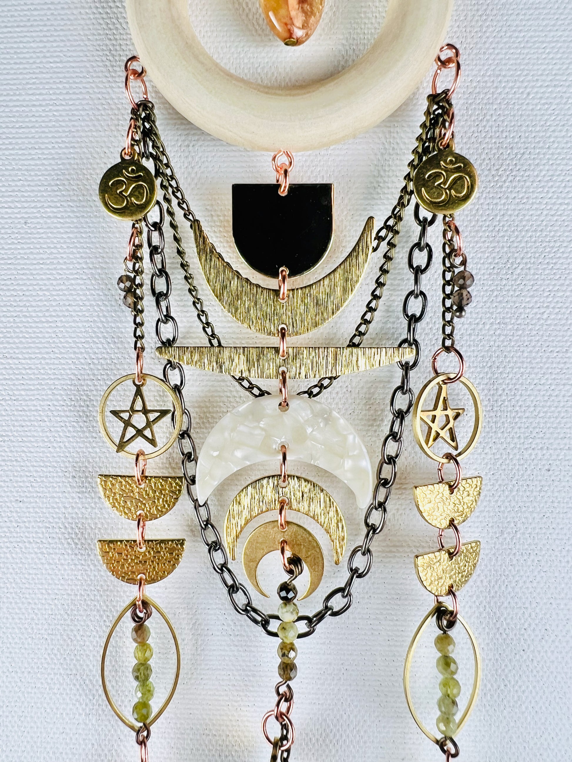 Fossilized Coral, Smoky Quartz, Green Garnet Manifestation Charm Wall Art