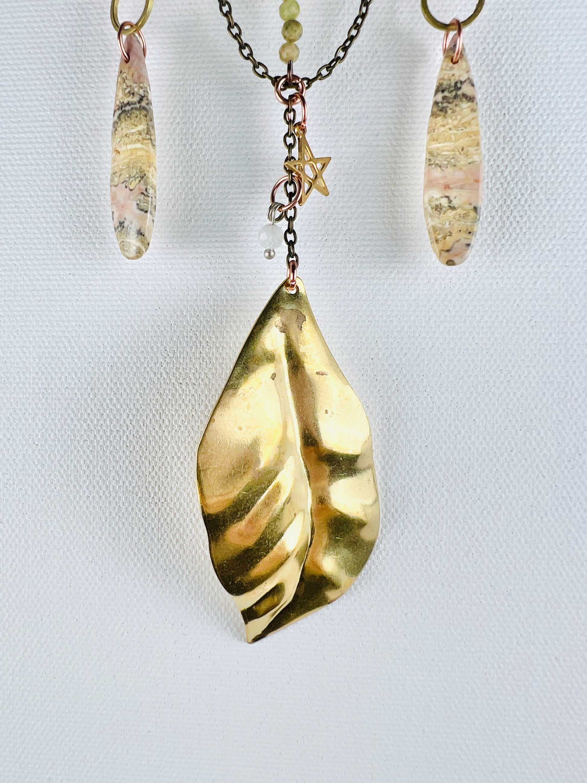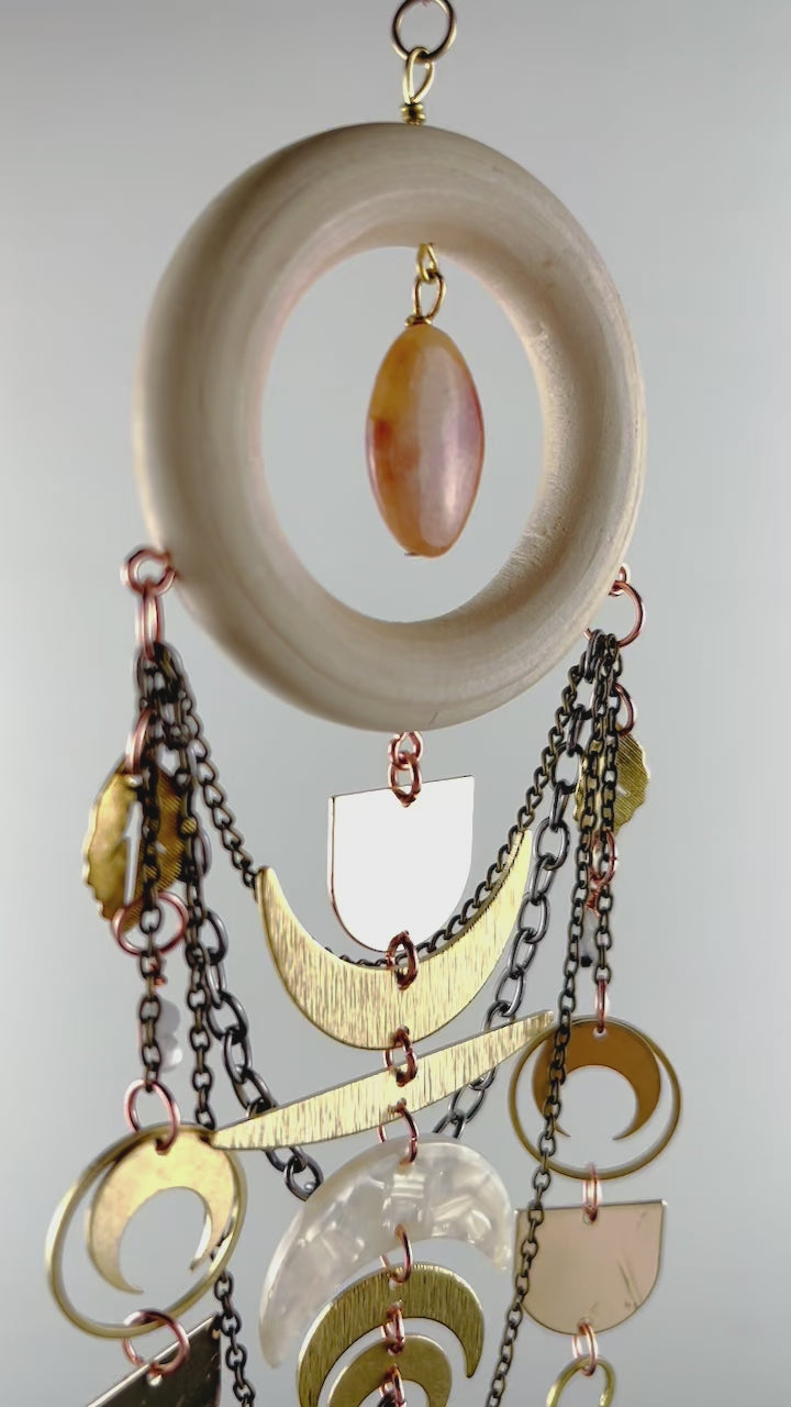 Fossilized Coral, Moonstone, Jasper, Green Garnet Manifestation Charm Wall Art