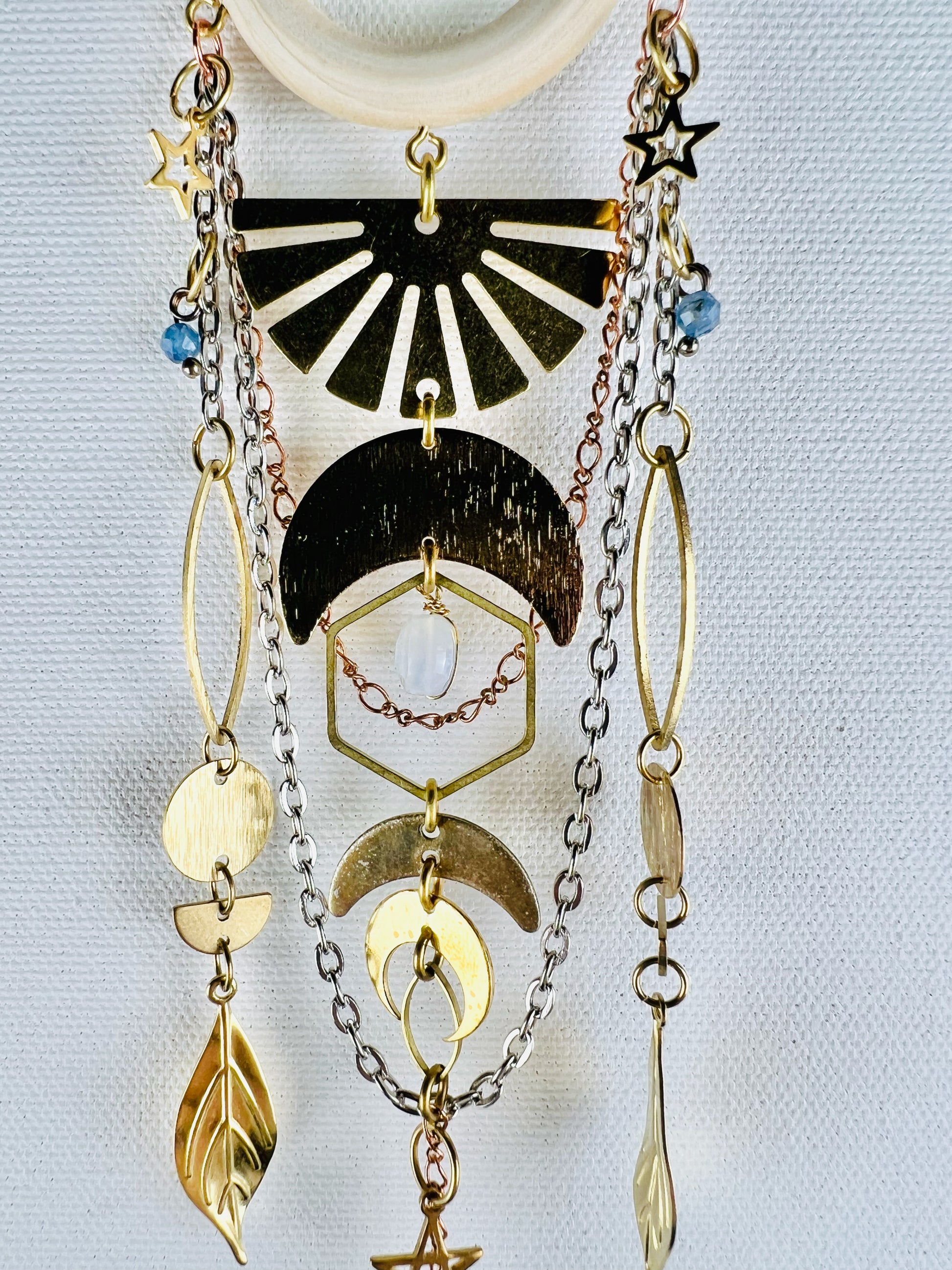 Simply hang your manifestation charm in your space, where you will see it often. This helps to keep your manifestations in the forefront of your mind. Keep the tag with listed stones and manifestations so you will always know what your charm means.