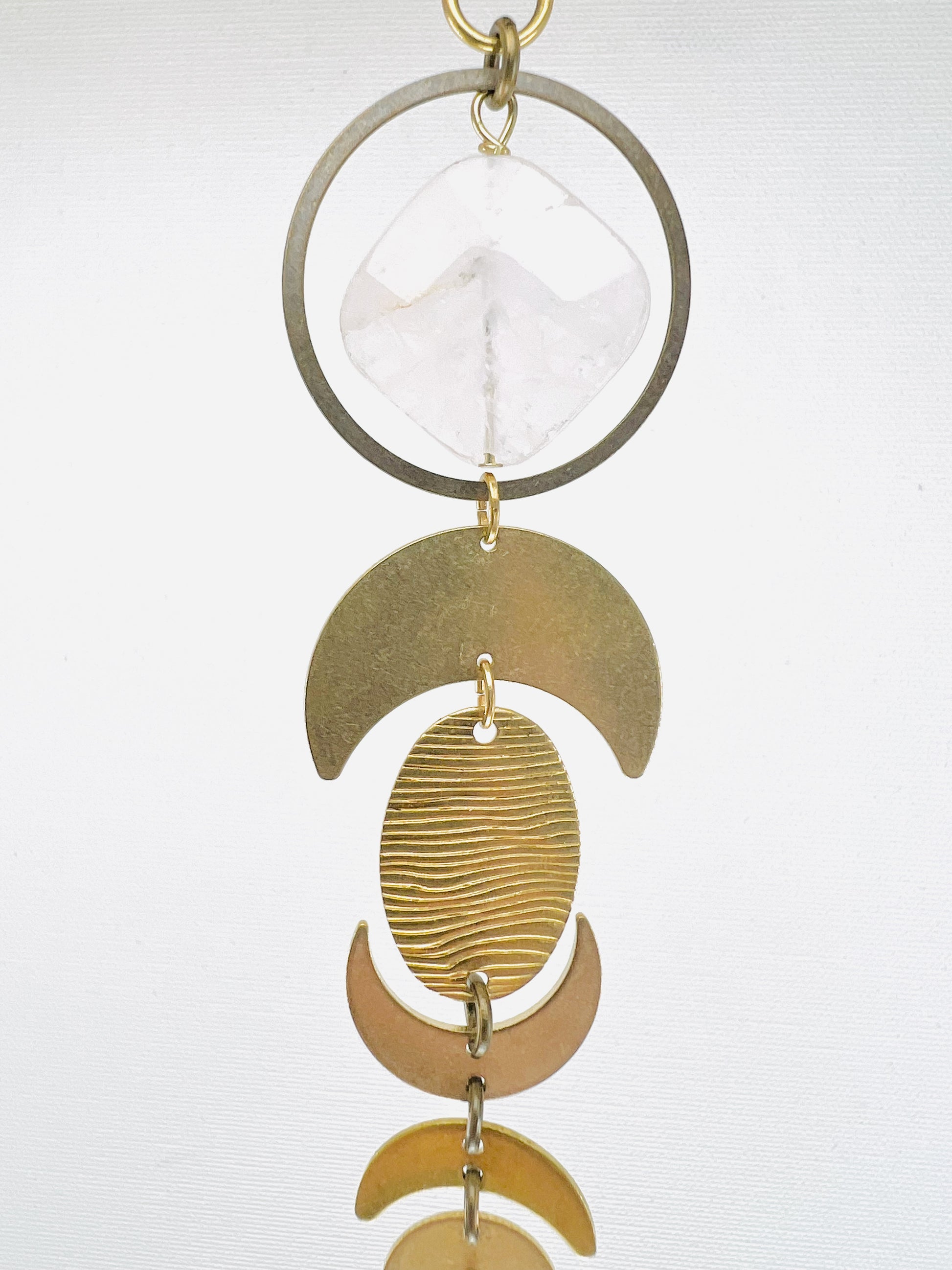 Simply hang your manifestation charm in your space, where you will see it often. This helps to keep your manifestations in the forefront of your mind. Keep the tag with listed stones and manifestations so you will always know what your charm means.
