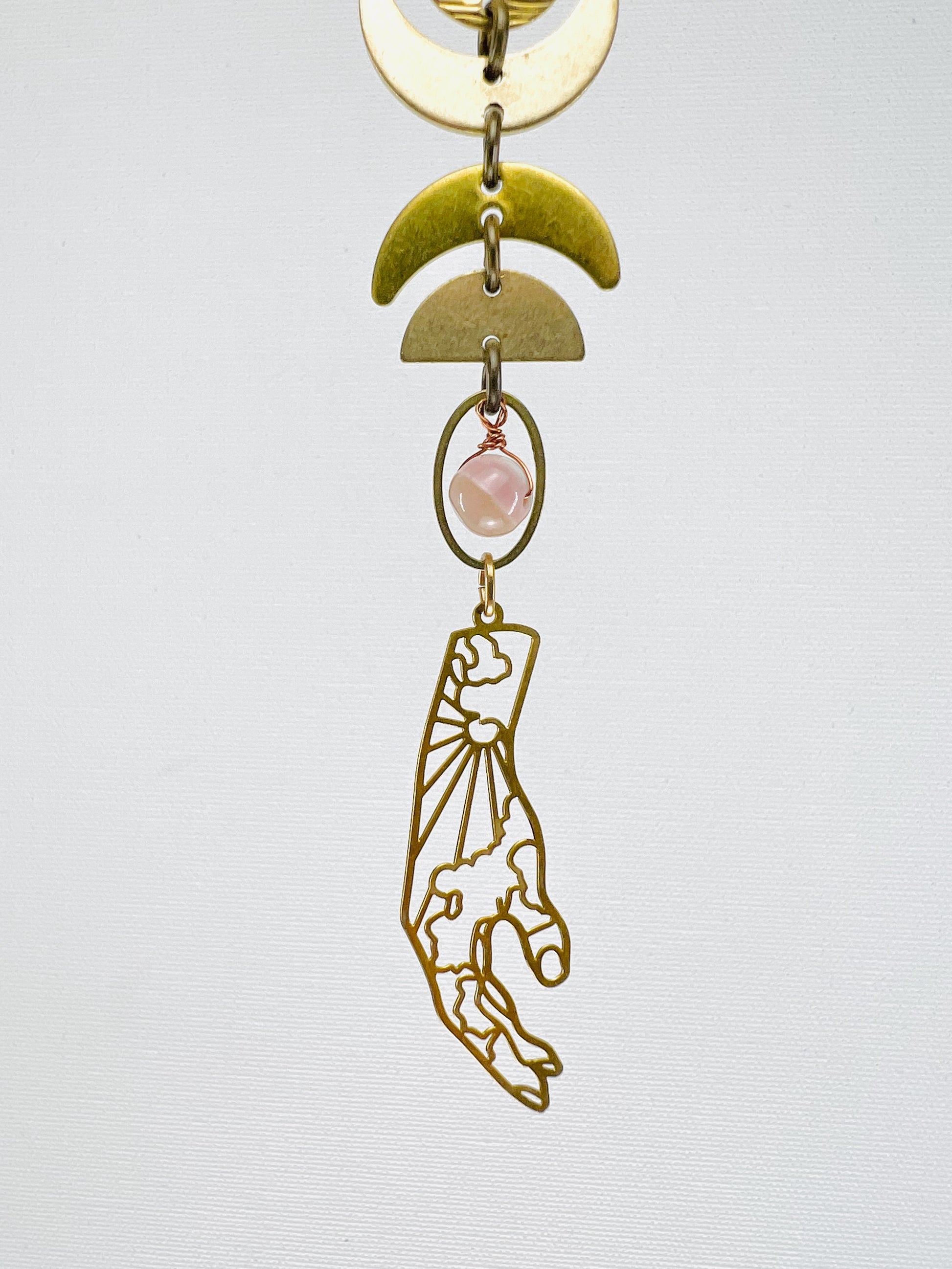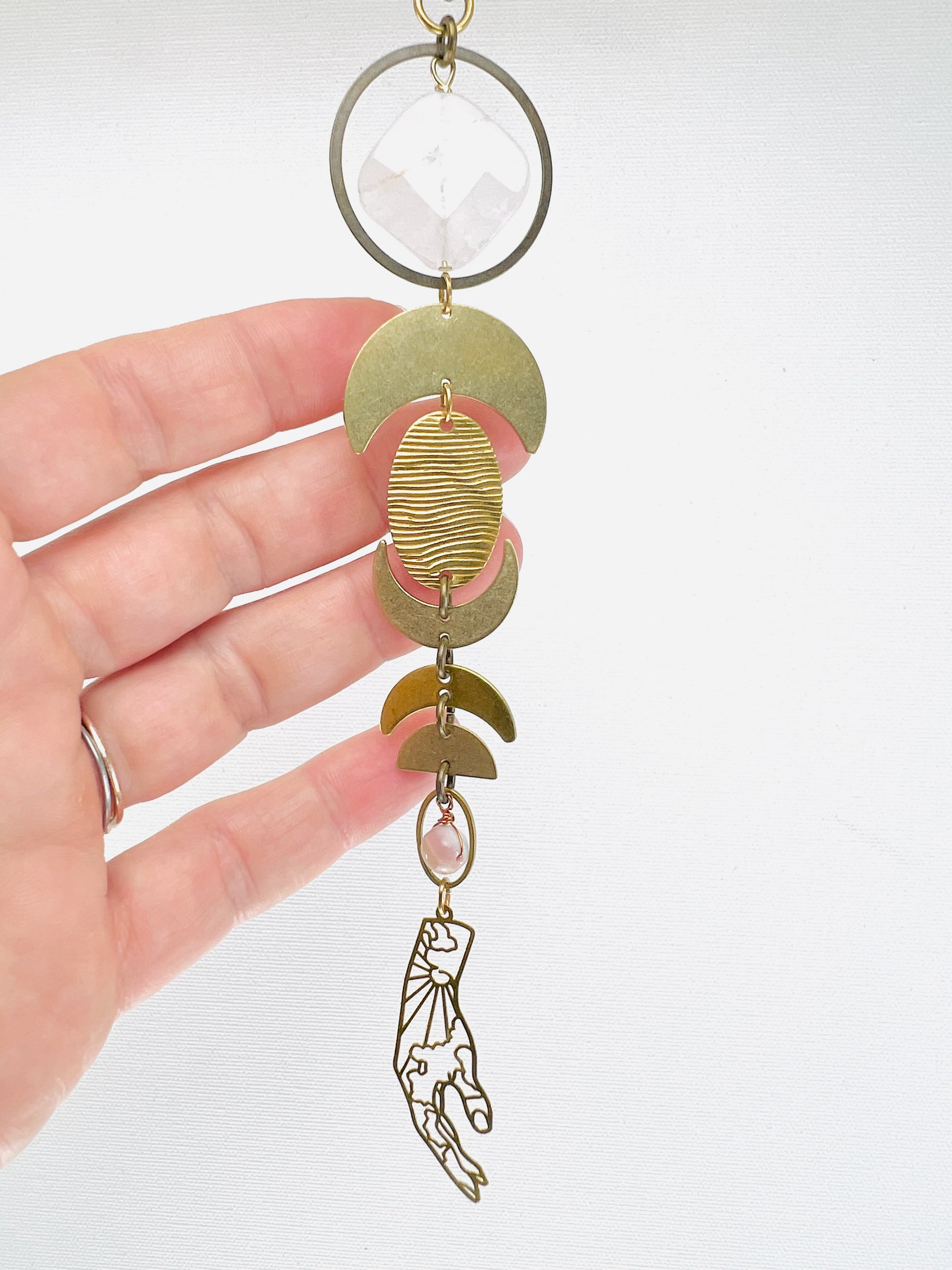 Handmade decor, created with intention; hang in your car as art to protect and manifest the good things to life.