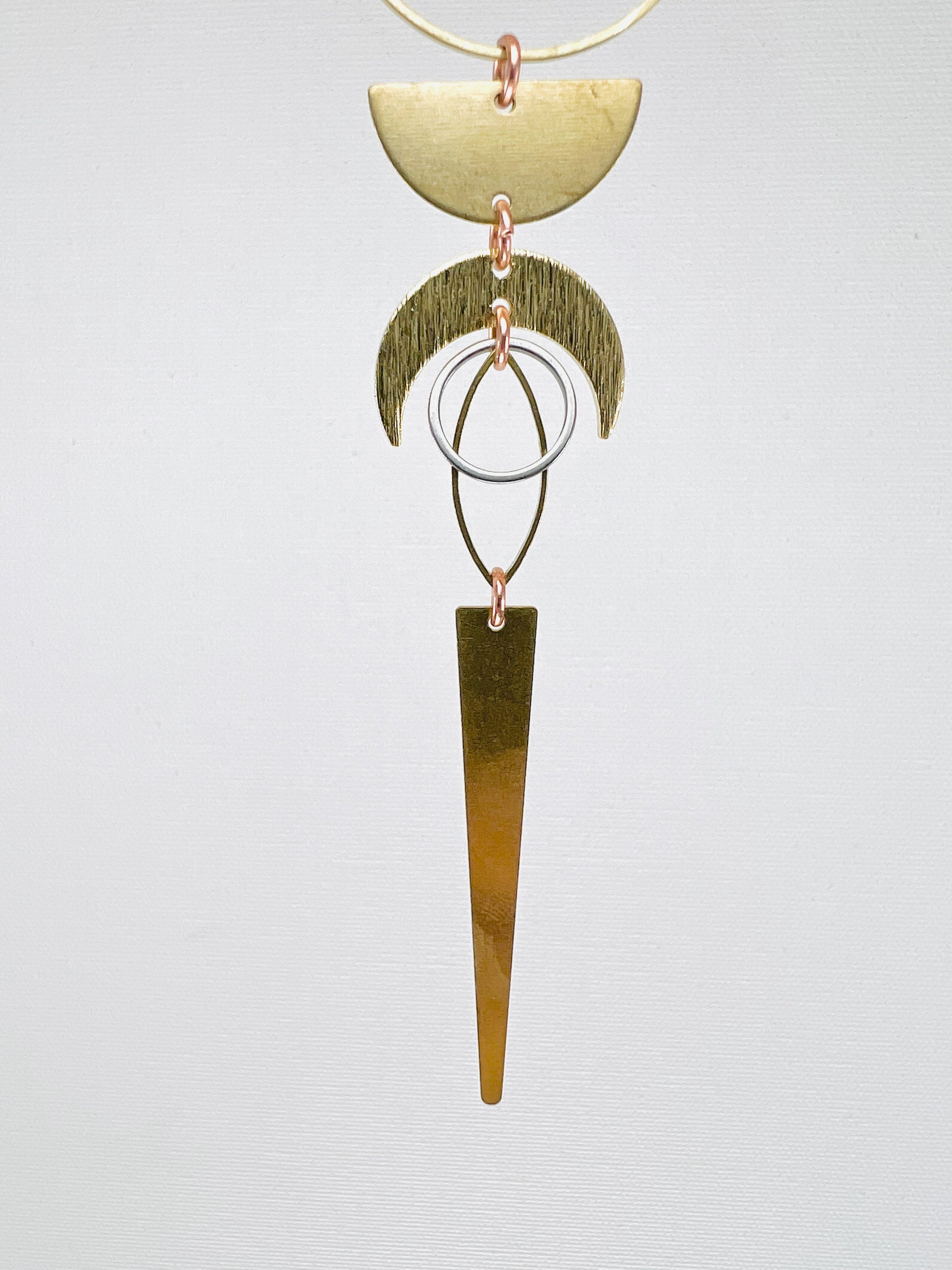 If you plan to wear this item as a piece of jewelry, keep in mind that it is brass and will tarnish from natural skin oils, simply polish with skin contact safe polish, if it tarnishes. Send me a message with your purchase and I will happily remove the top ring so that it will string easily onto a chain and lay flat or you can remove the top ring yourself with a pair of pliers. Feel free to message me with any further questions about this.