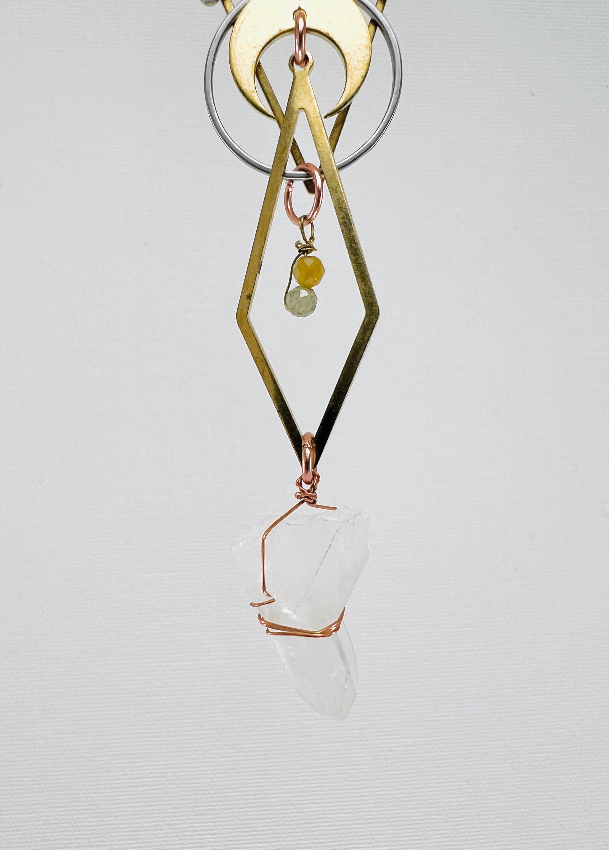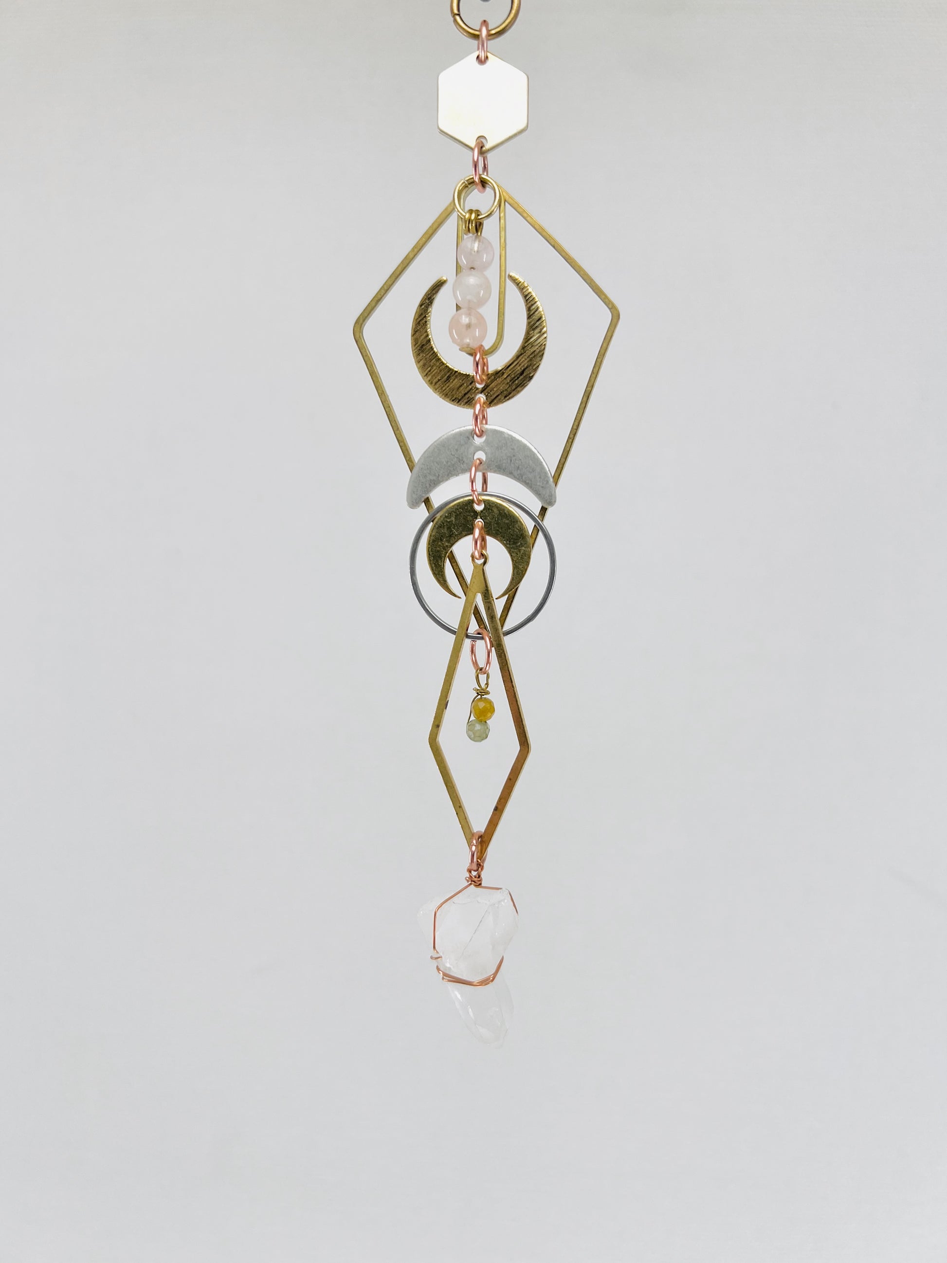 Morganite, Green Tourmaline, Quartz Manifestation Mini, Rearview Mirror Car Charm
