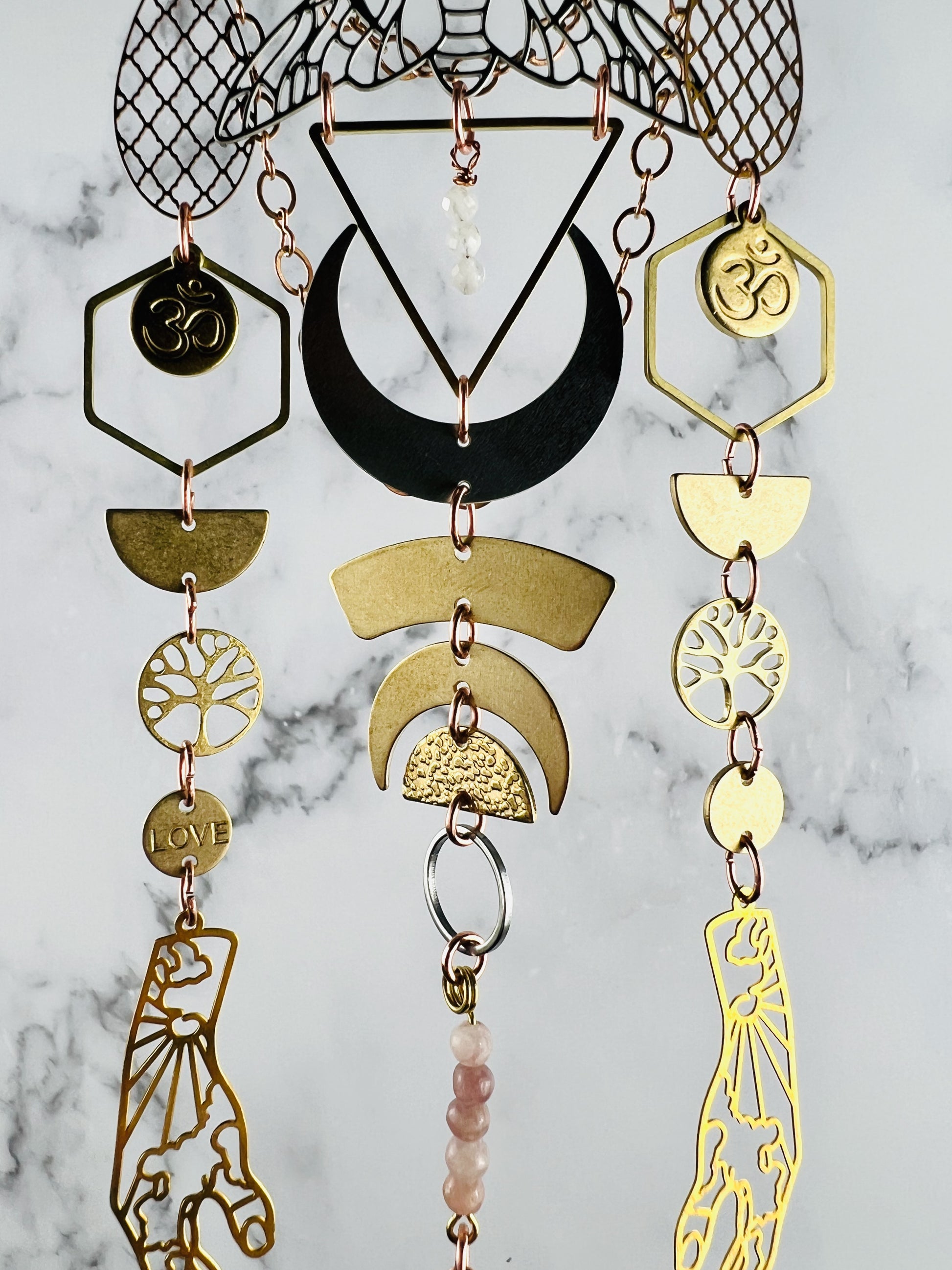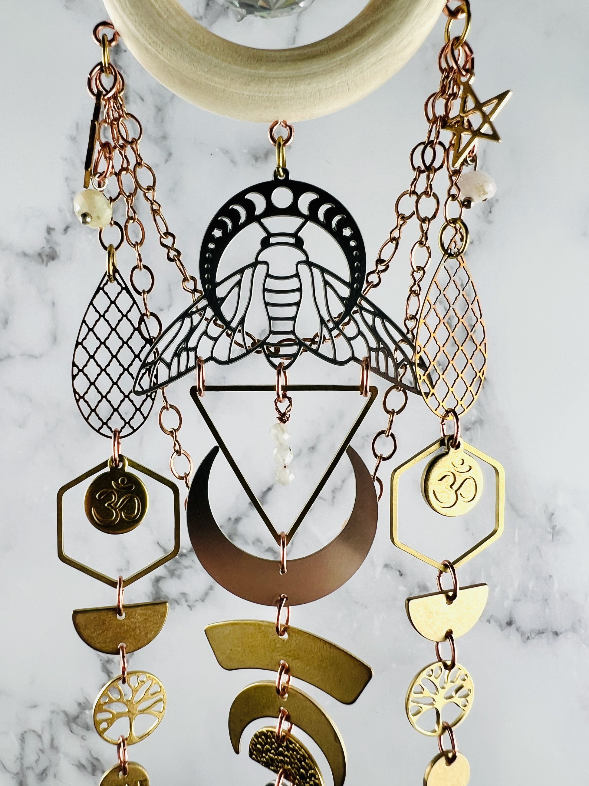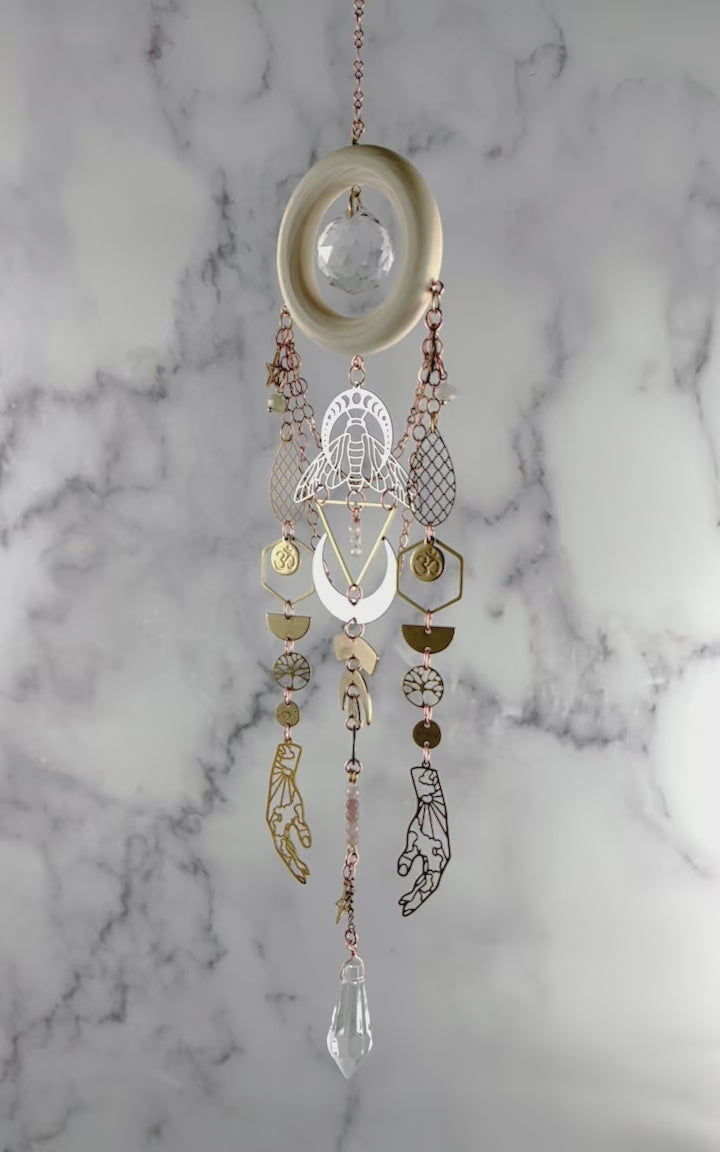 Simply hang your manifestation charm in your space, where you will see it often. This helps to keep your manifestations in the forefront of your mind. Keep the tag with listed stones and manifestations so you will always know what your charm means.