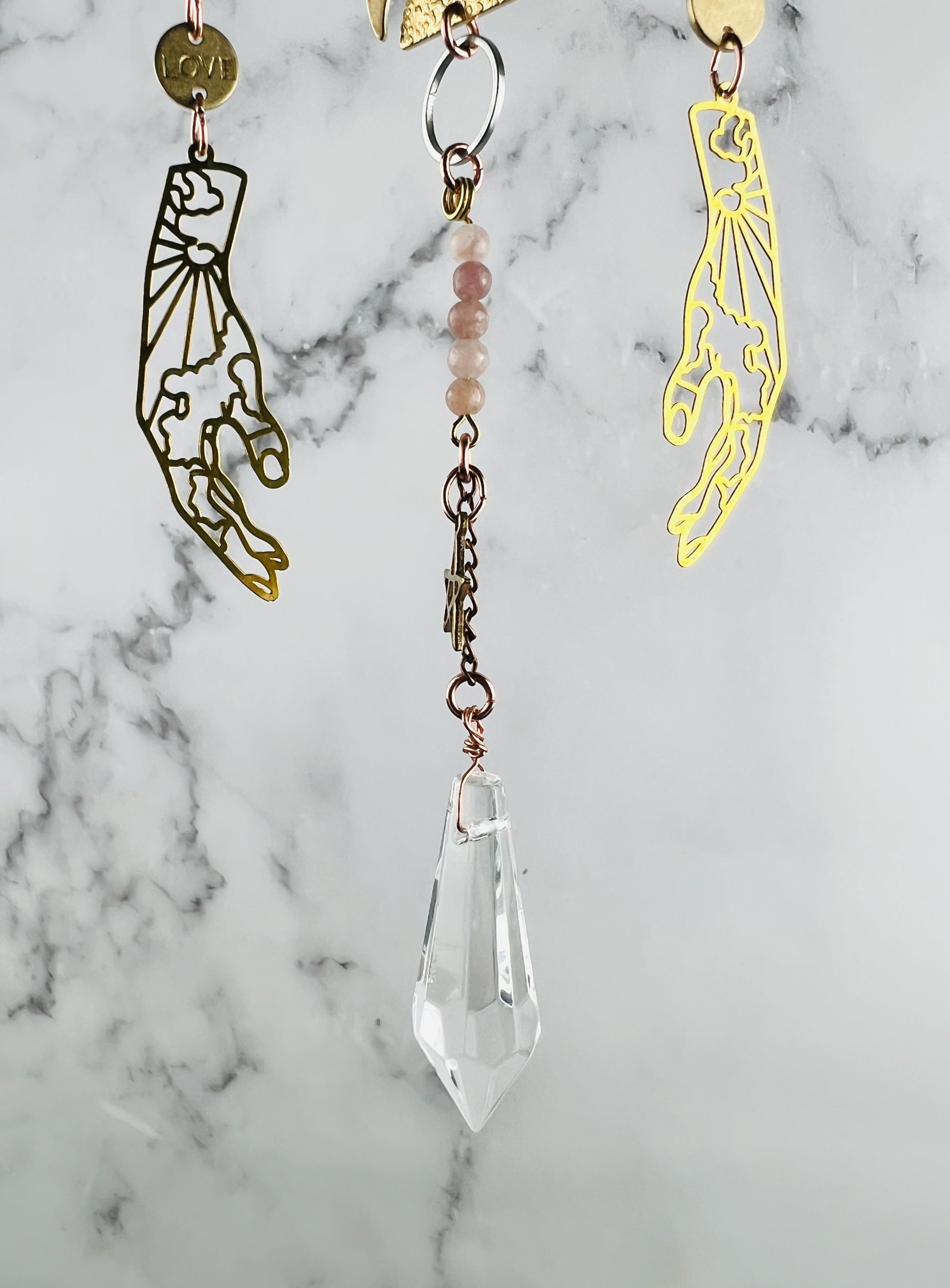 Morganite, Moonstone, Lepidolite, Wall Art Manifestation Charm