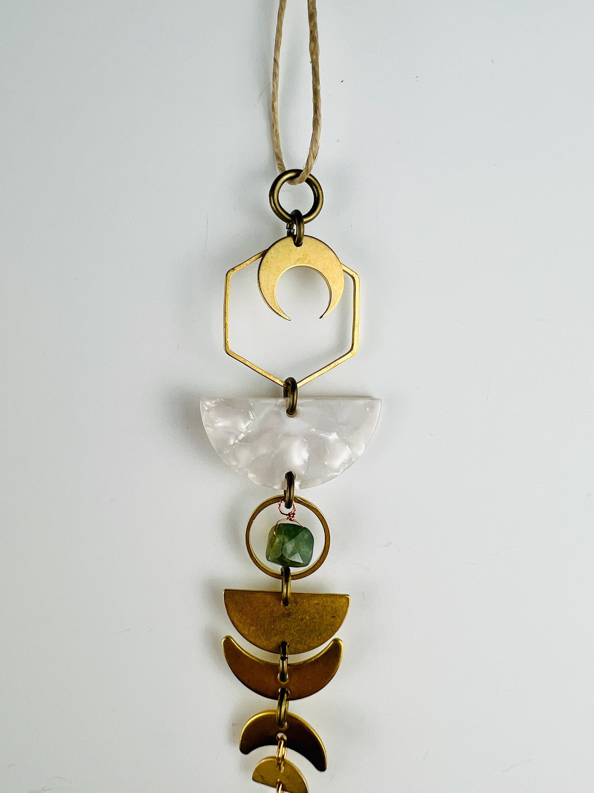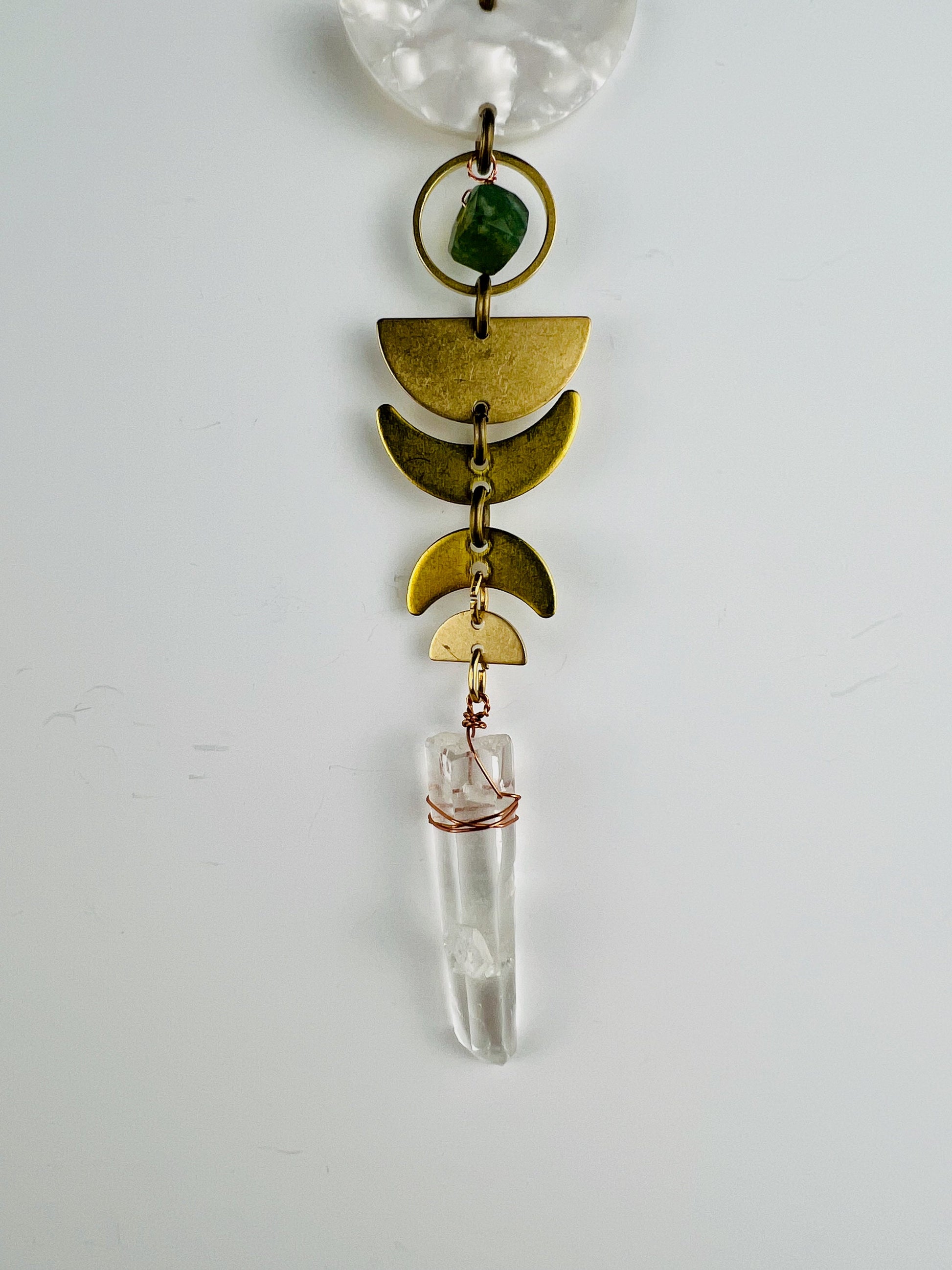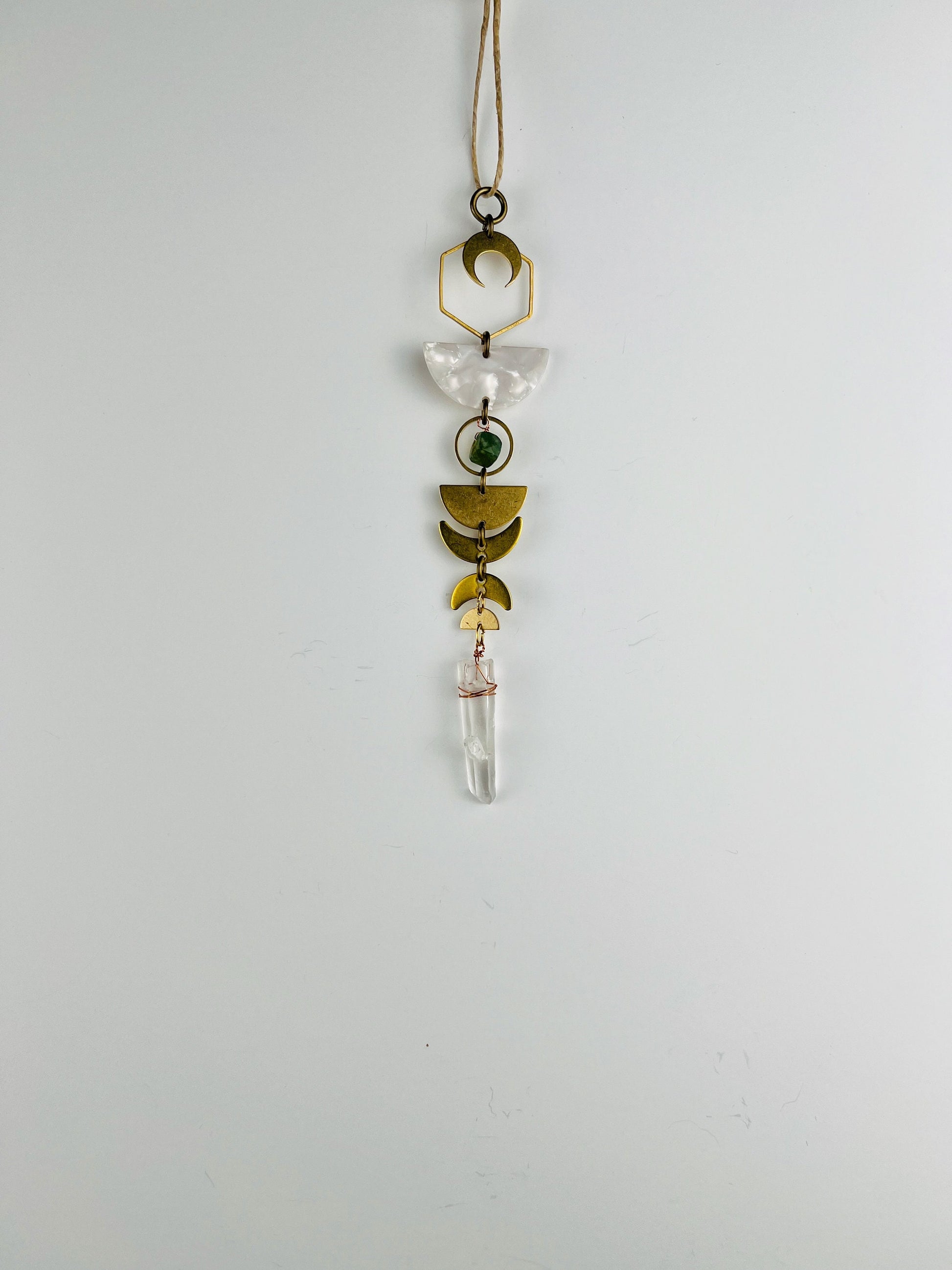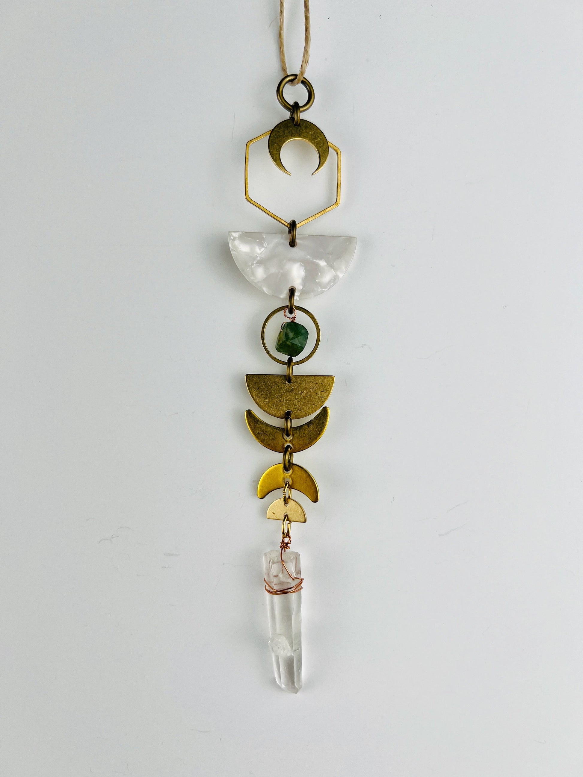 Simply hang your manifestation charm in your space, where you will see it often. This helps to keep your manifestations in the forefront of your mind. Keep the tag with listed stones and manifestations so you will always know what your charm means.