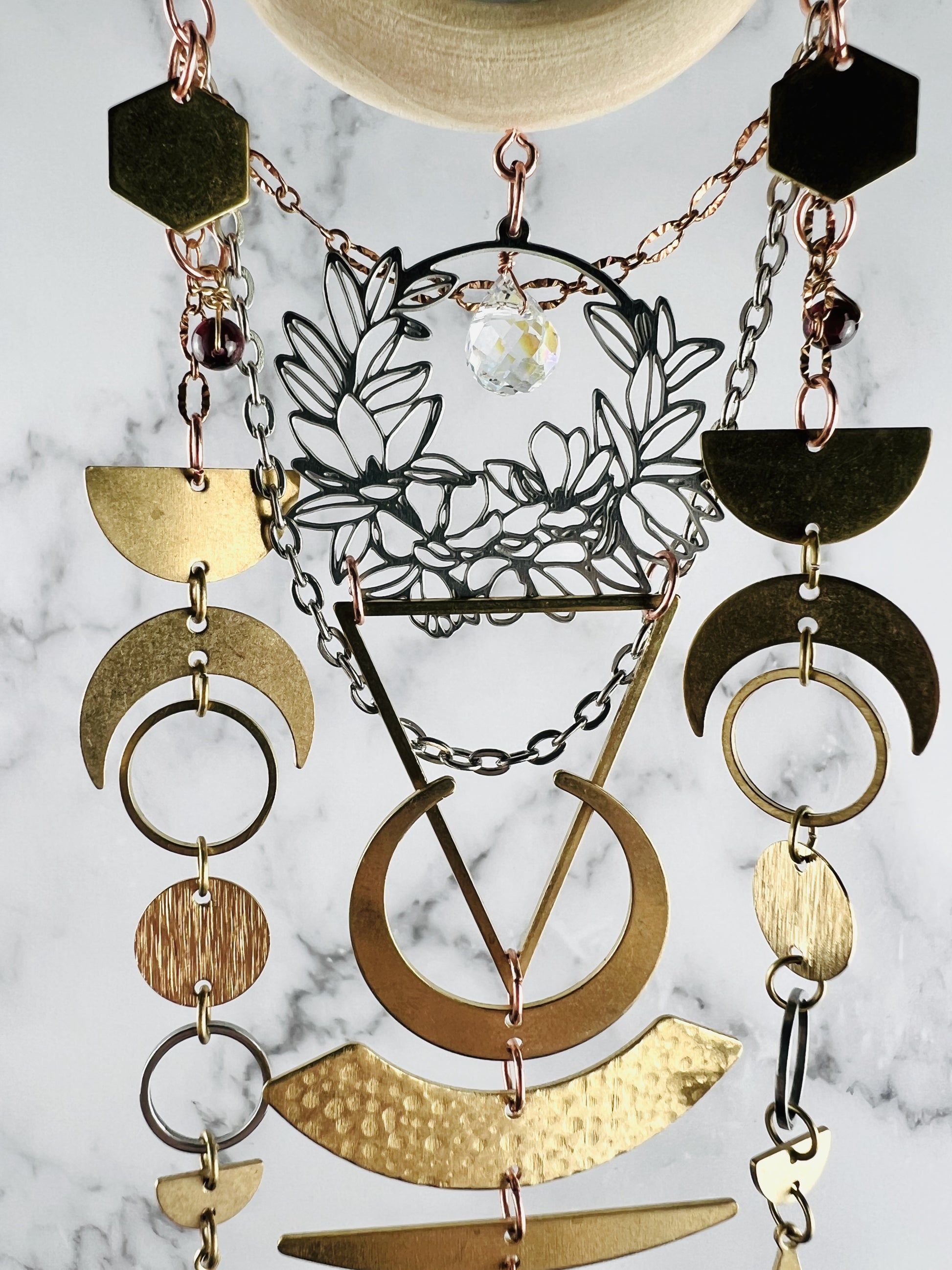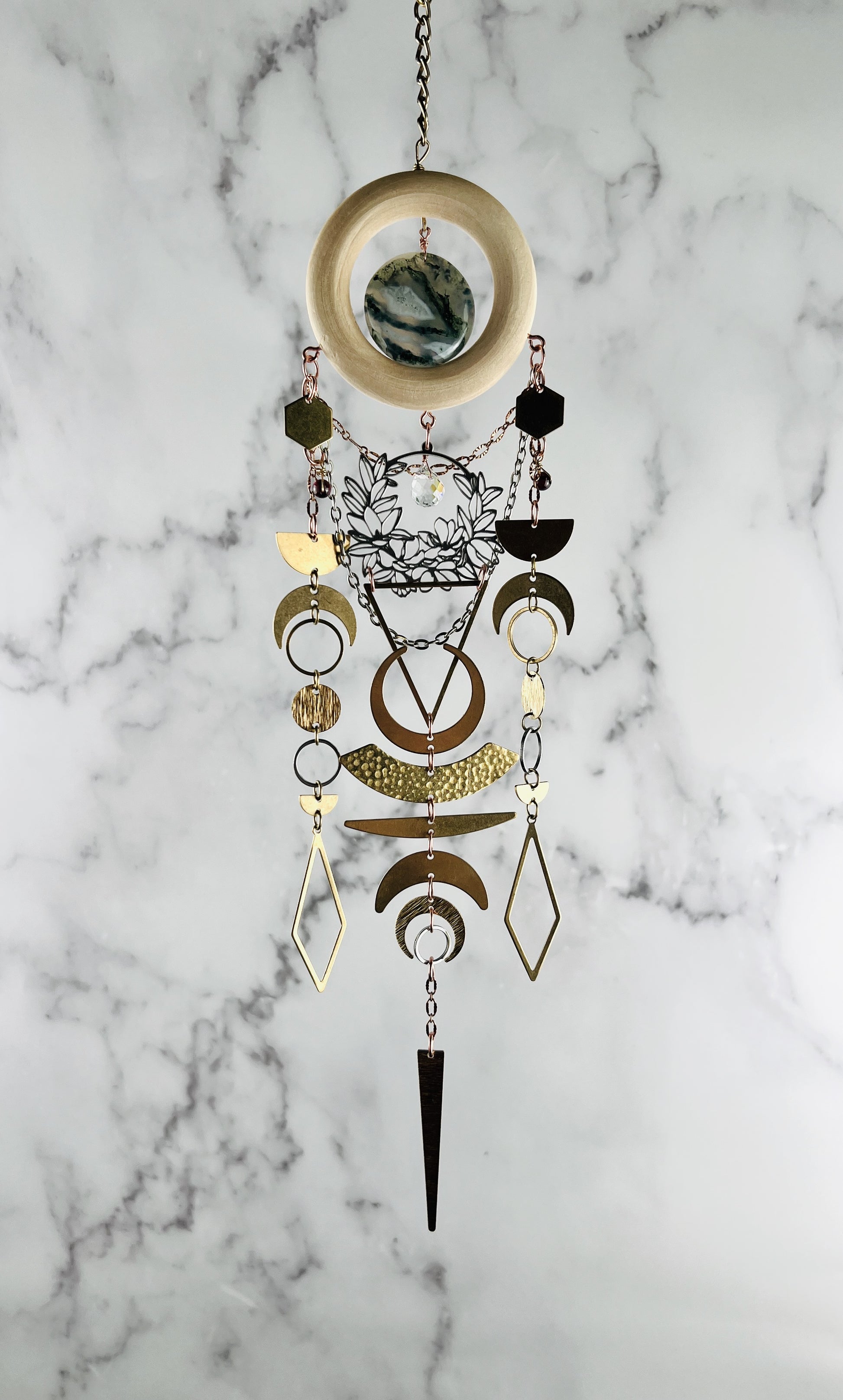 Simply hang your manifestation charm in your space, where you will see it often. This helps to keep your manifestations in the forefront of your mind. Keep the tag with listed stones and manifestations so you will always know what your charm means.