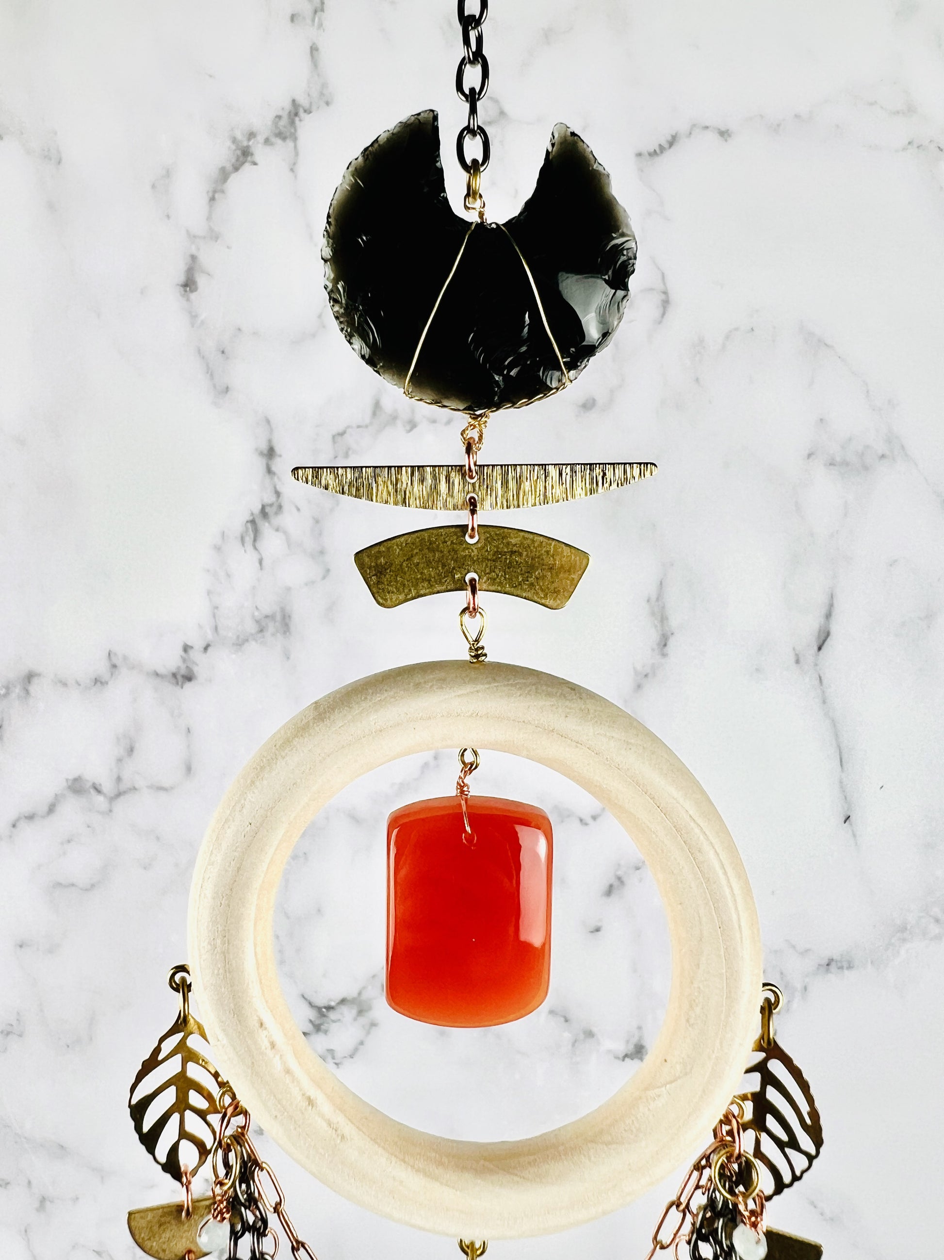 Obsidian, Carnelian, Aquamarine & Black Tourmaline Manifestation Charm