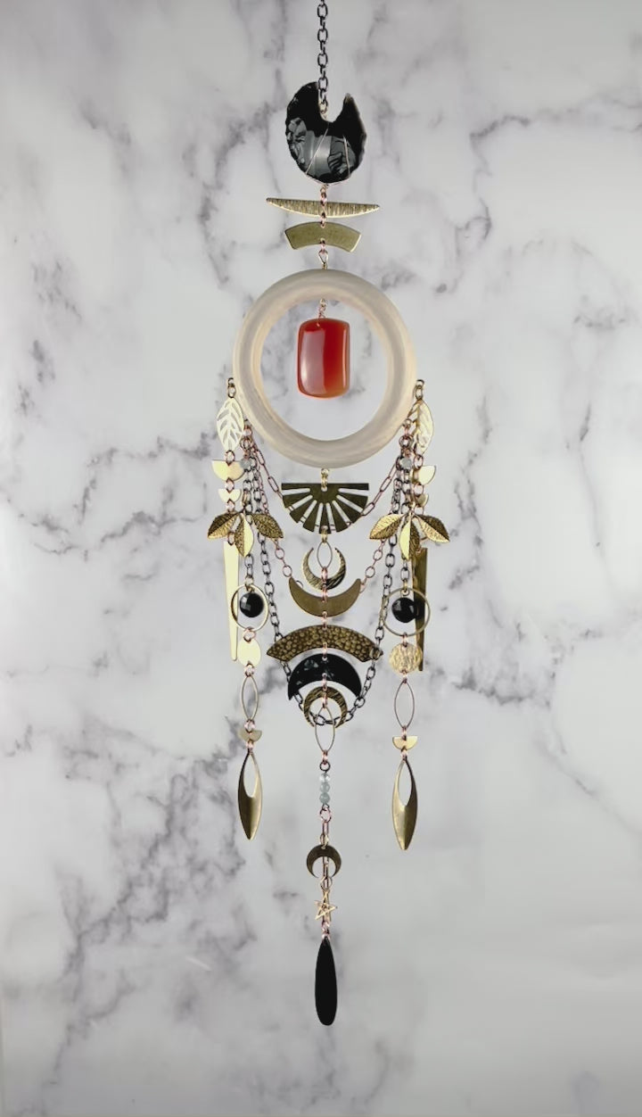 Simply hang your manifestation charm in your space, where you will see it often. This helps to keep your manifestations in the forefront of your mind. Keep the tag with listed stones and manifestations so you will always know what your charm means.