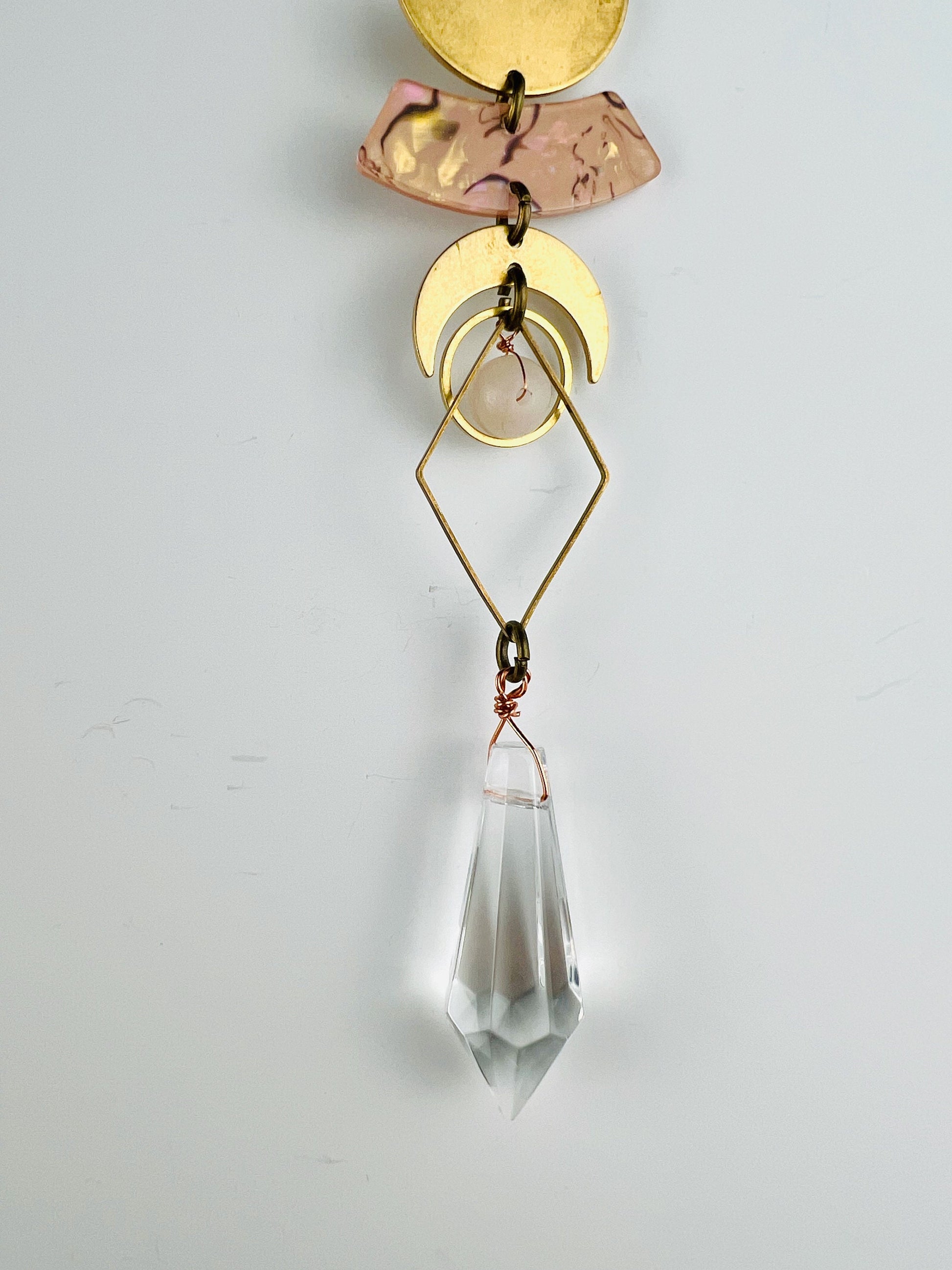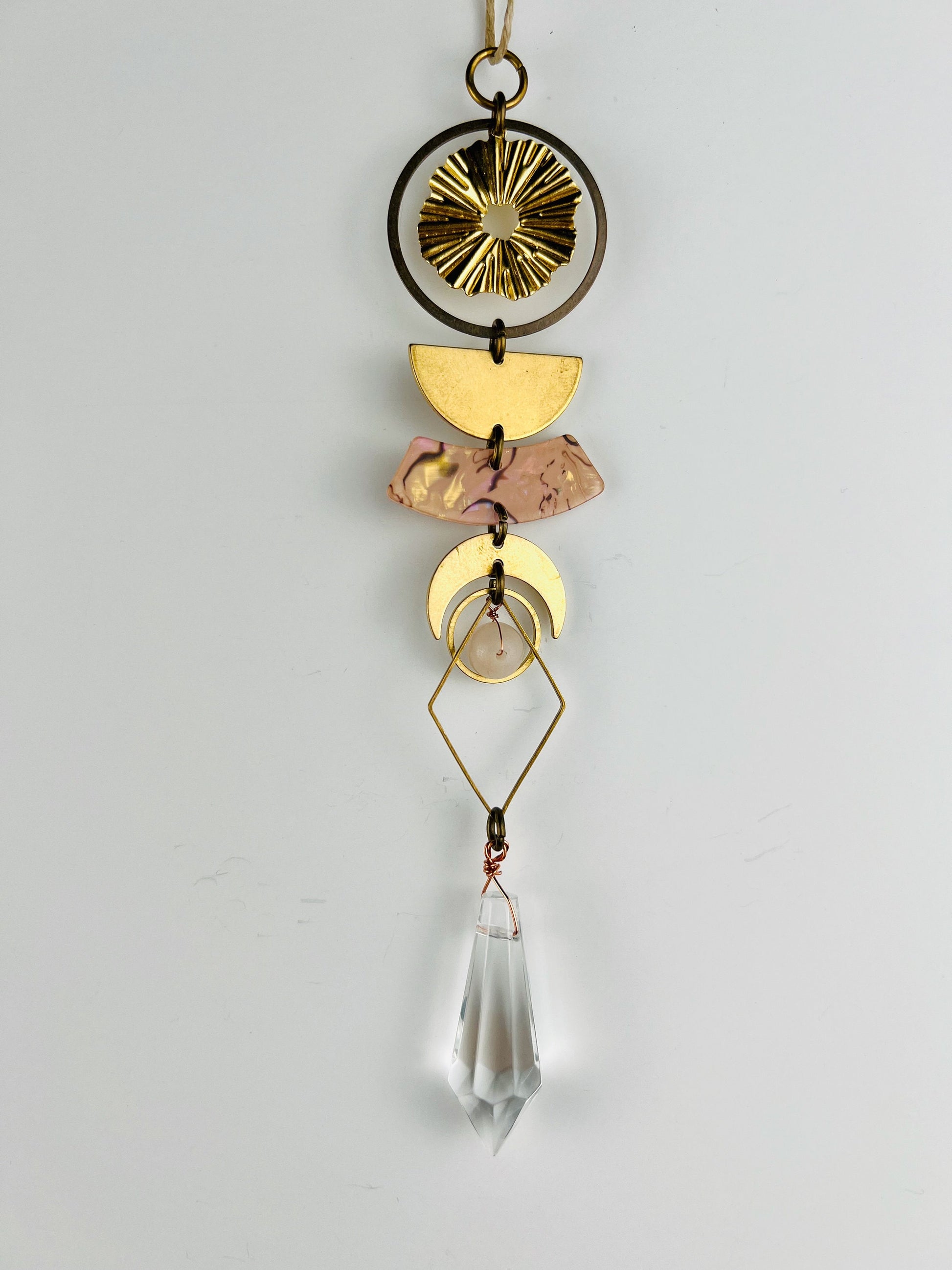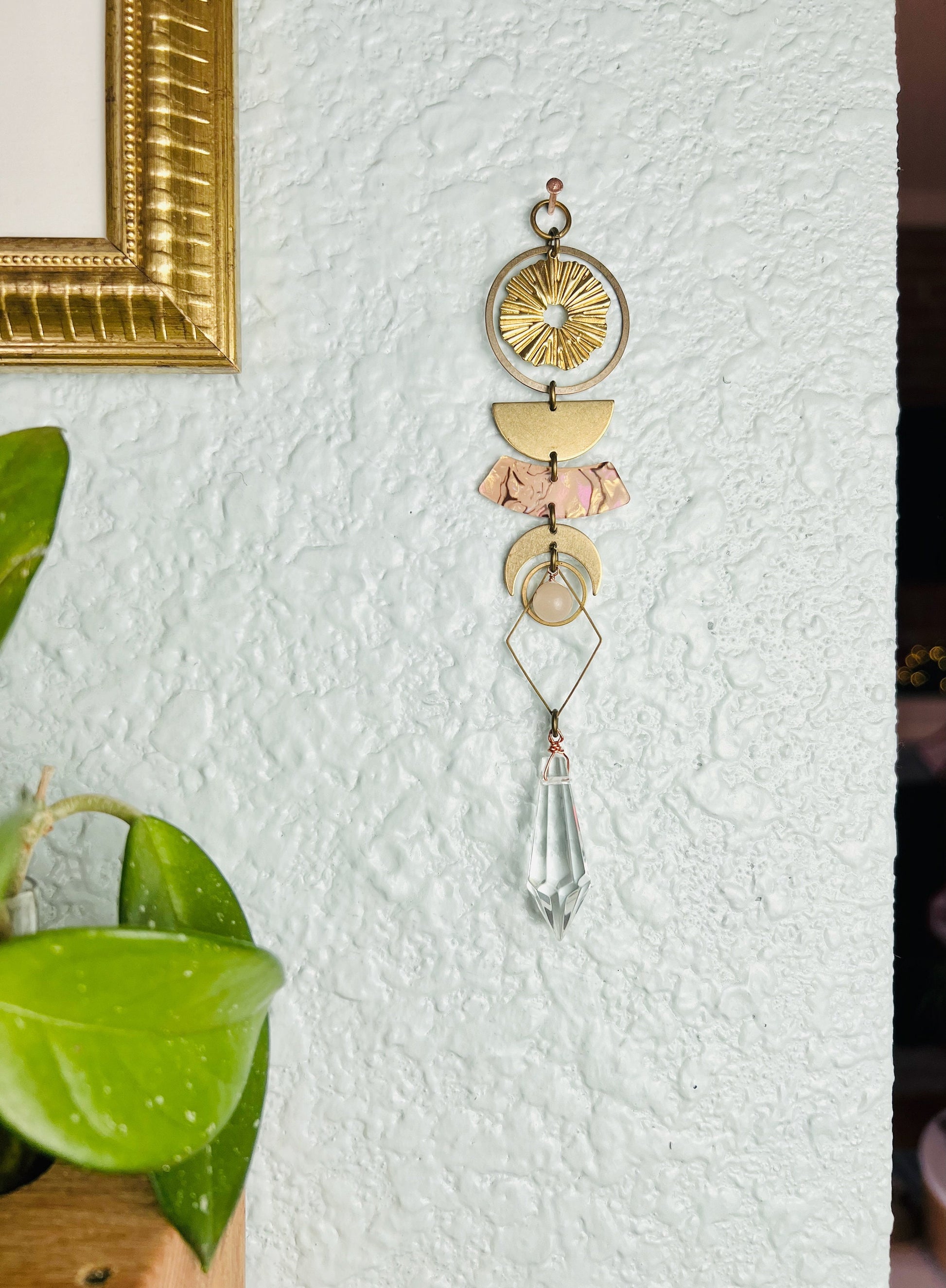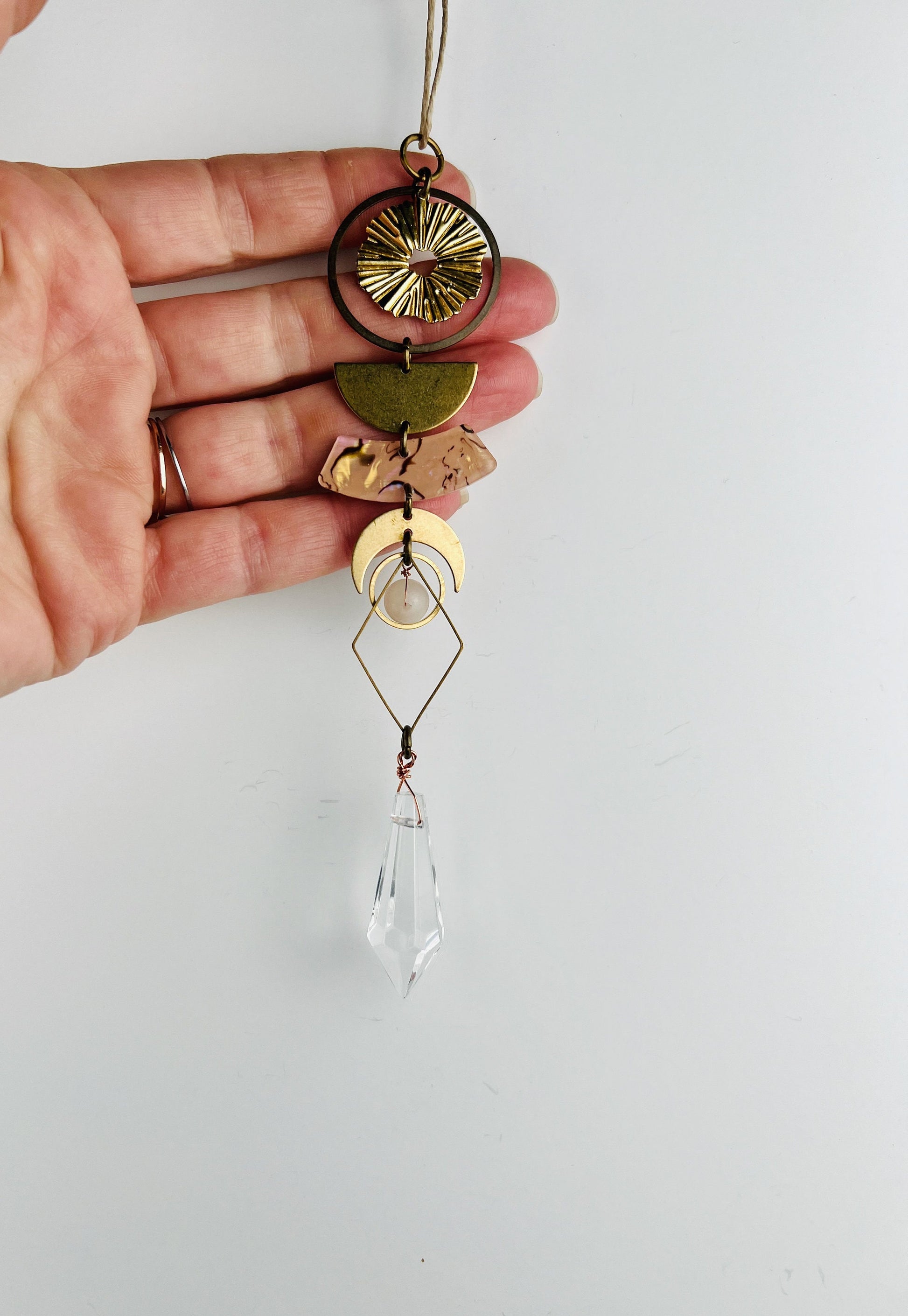 Simply hang your manifestation charm in your space, where you will see it often. This helps to keep your manifestations in the forefront of your mind. Keep the tag with listed stones and manifestations so you will always know what your charm means.