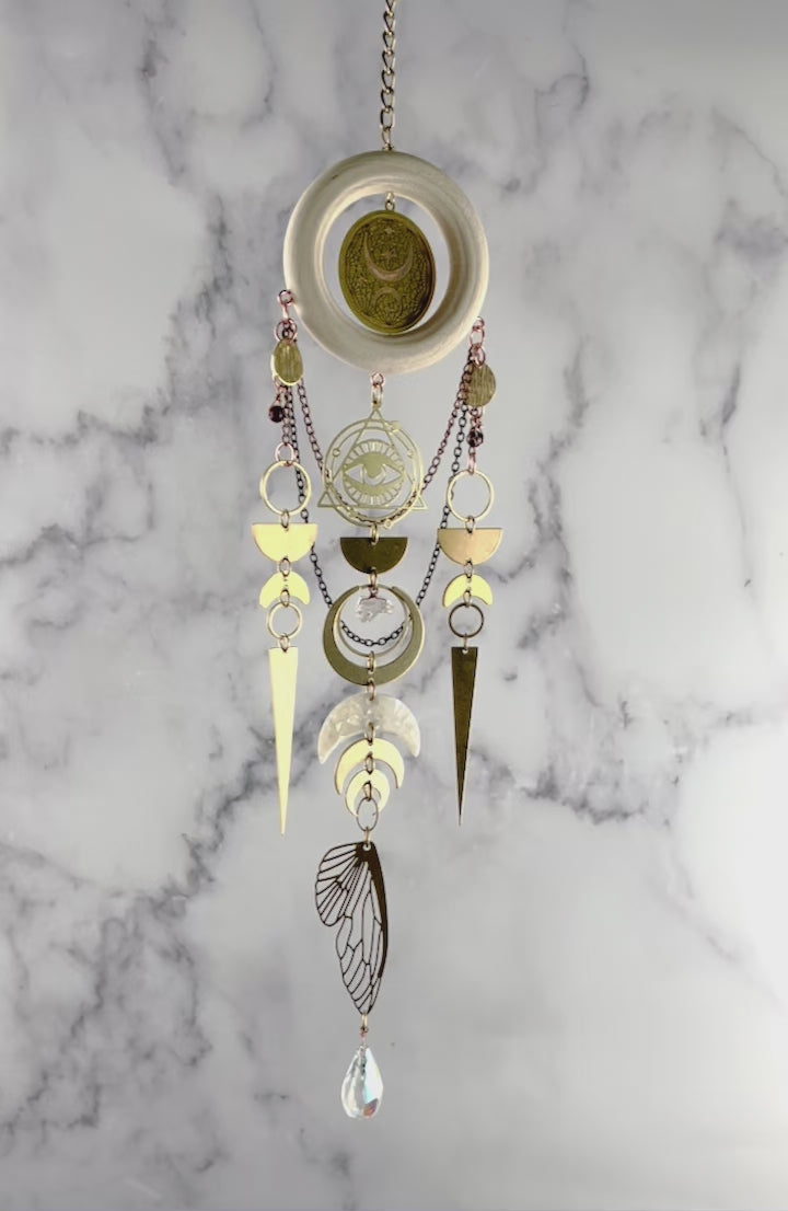 Simply hang your manifestation charm in your space, where you will see it often. This helps to keep your manifestations in the forefront of your mind. Keep the tag with listed stones and manifestations so you will always know what your charm means.