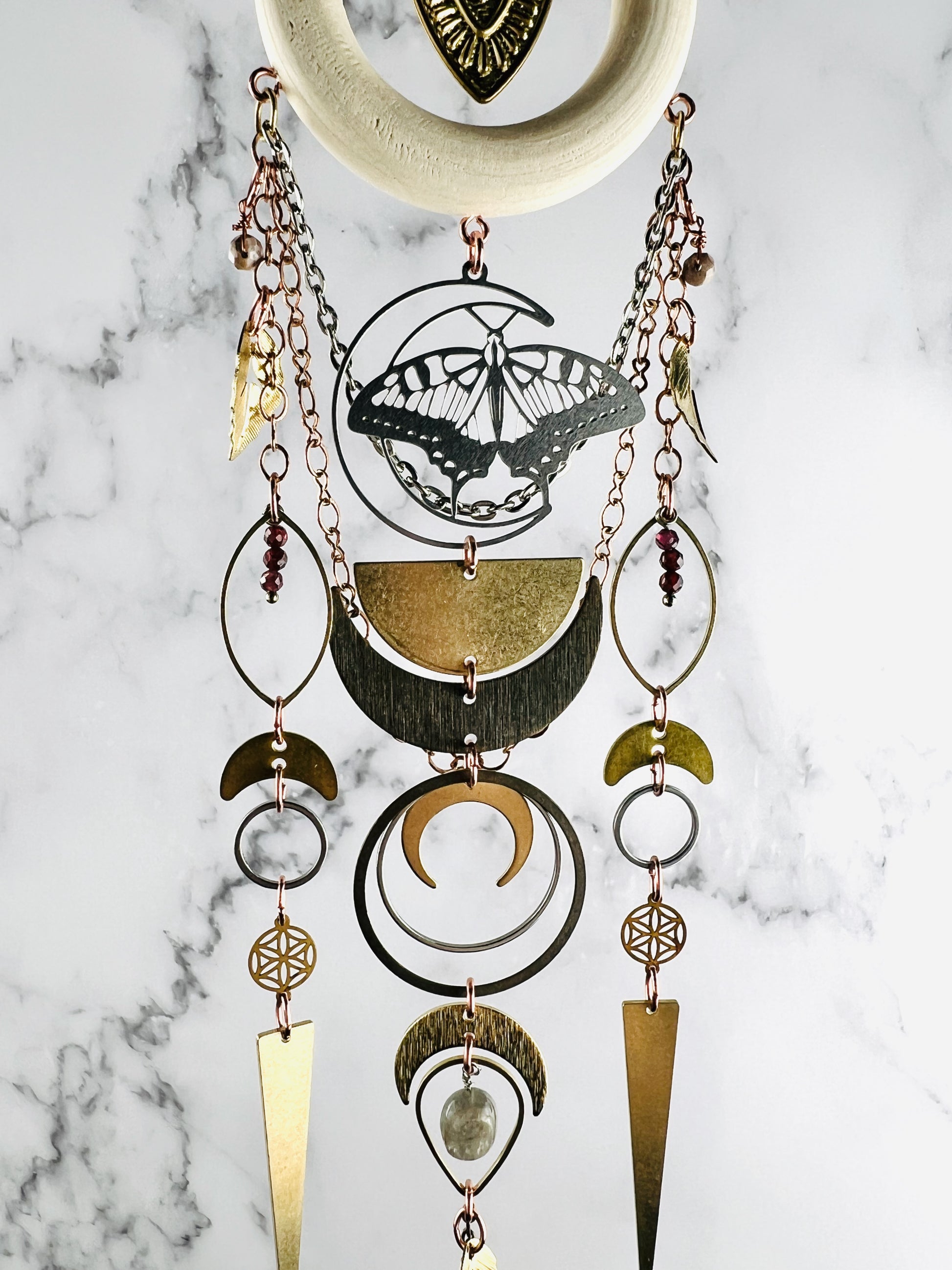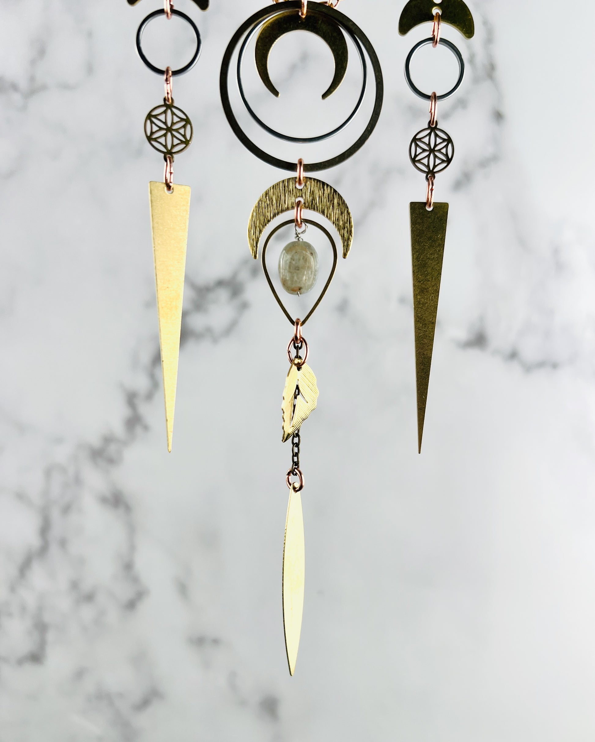 Simply hang your manifestation charm in your space, where you will see it often. This helps to keep your manifestations in the forefront of your mind. Keep the tag with listed stones and manifestations so you will always know what your charm means.