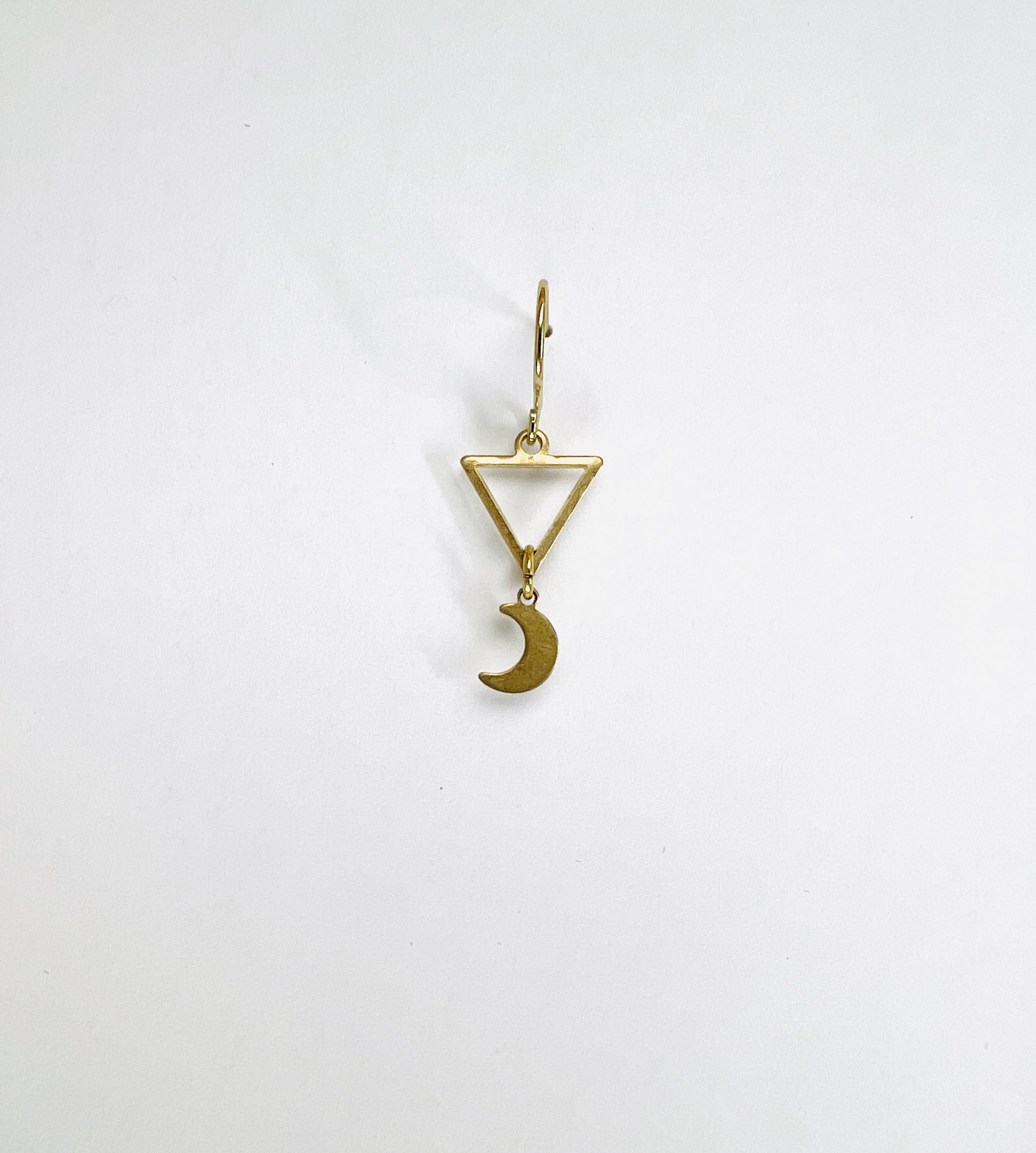 Singly Sold Brass Earring, Triangle with Moon, Manifestation Jewelry