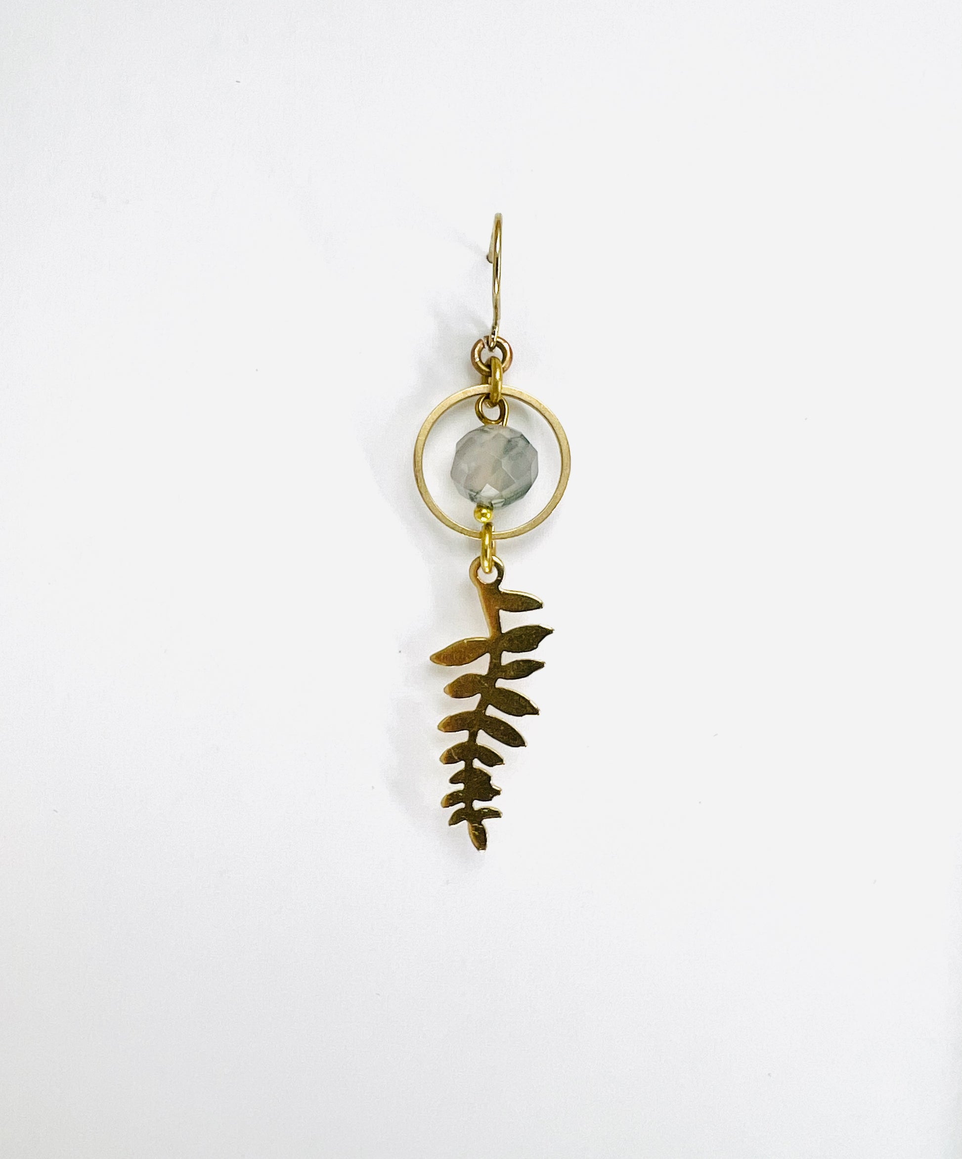 Singly Sold Moss Agate & Leaf Earring, Crystal Manifestation Jewelry
