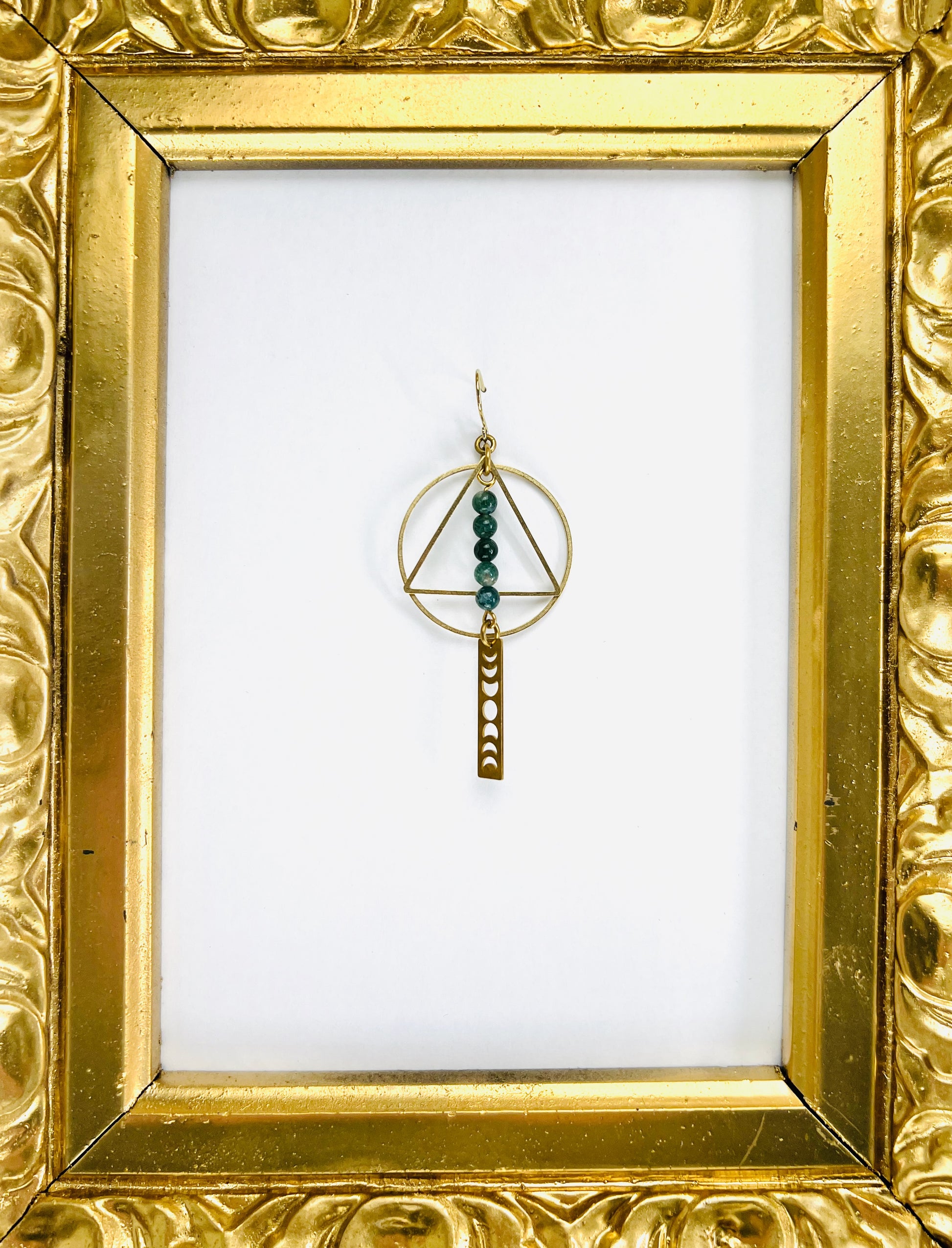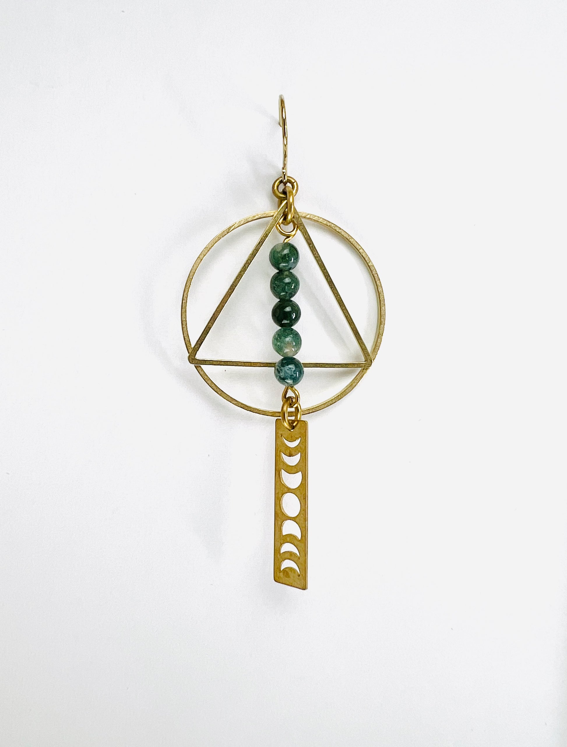 Single Earring, Moss Agate, Crystal Manifestation Jewelry
