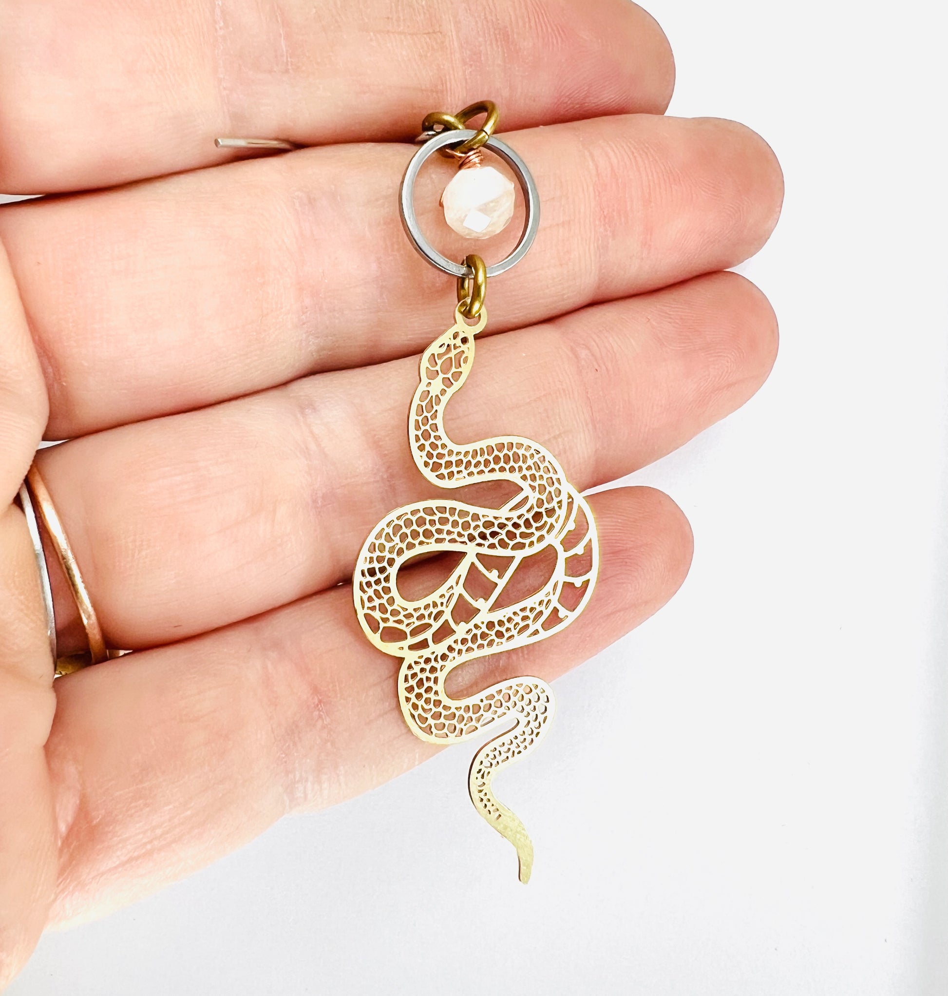 Singly Sold Citrine and Snake Earring, Crystal Manifestation Jewelry