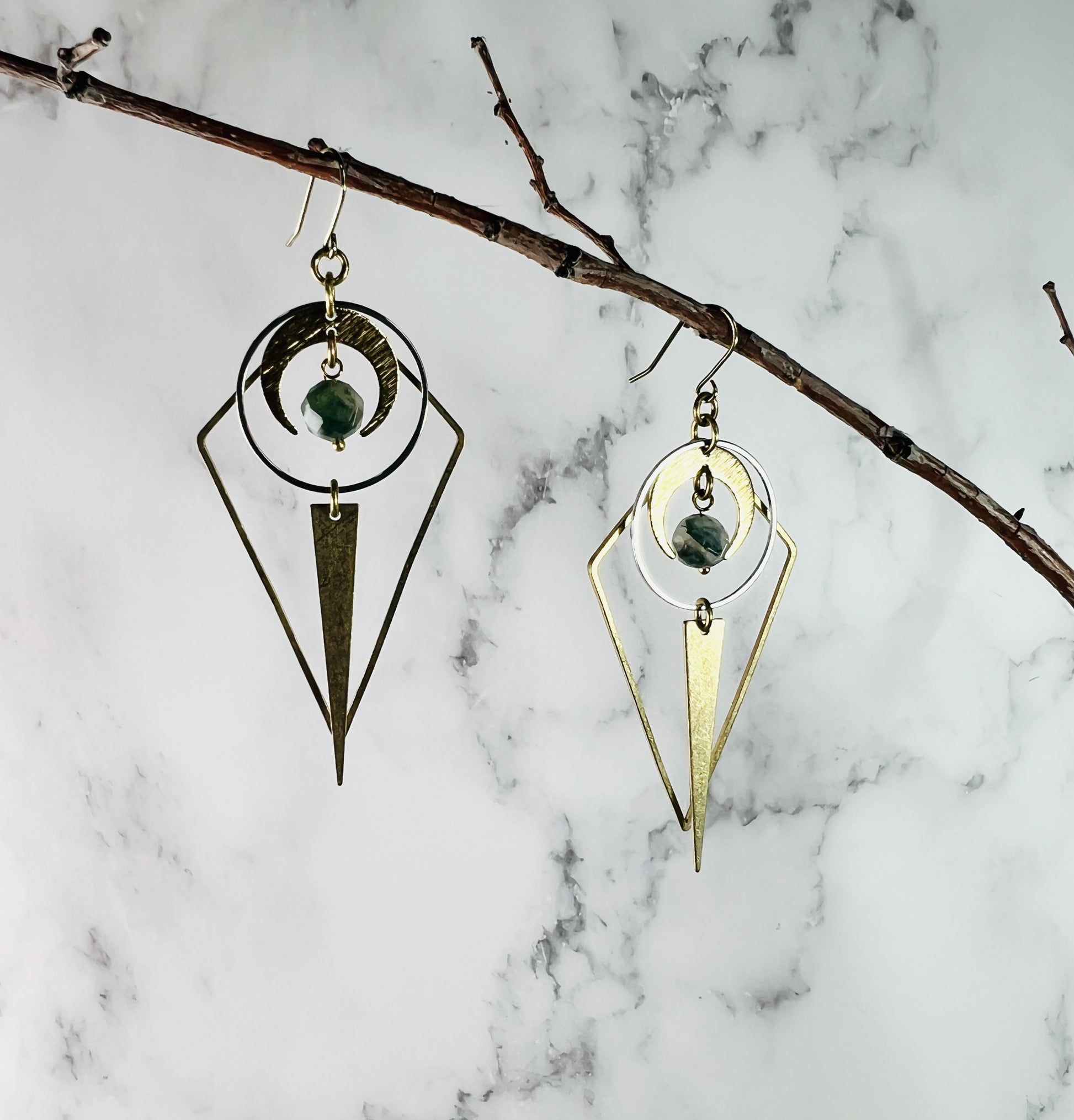 Pair of Lightweight Moss Agate Earrings, Manifestation Jewelry